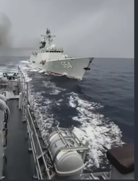 It said the Chinese frigate BN 554 was documented tailing PS35 at close range while BN 573 dangerously crossed its bow in a high-risk maneuver that created the danger of collision.