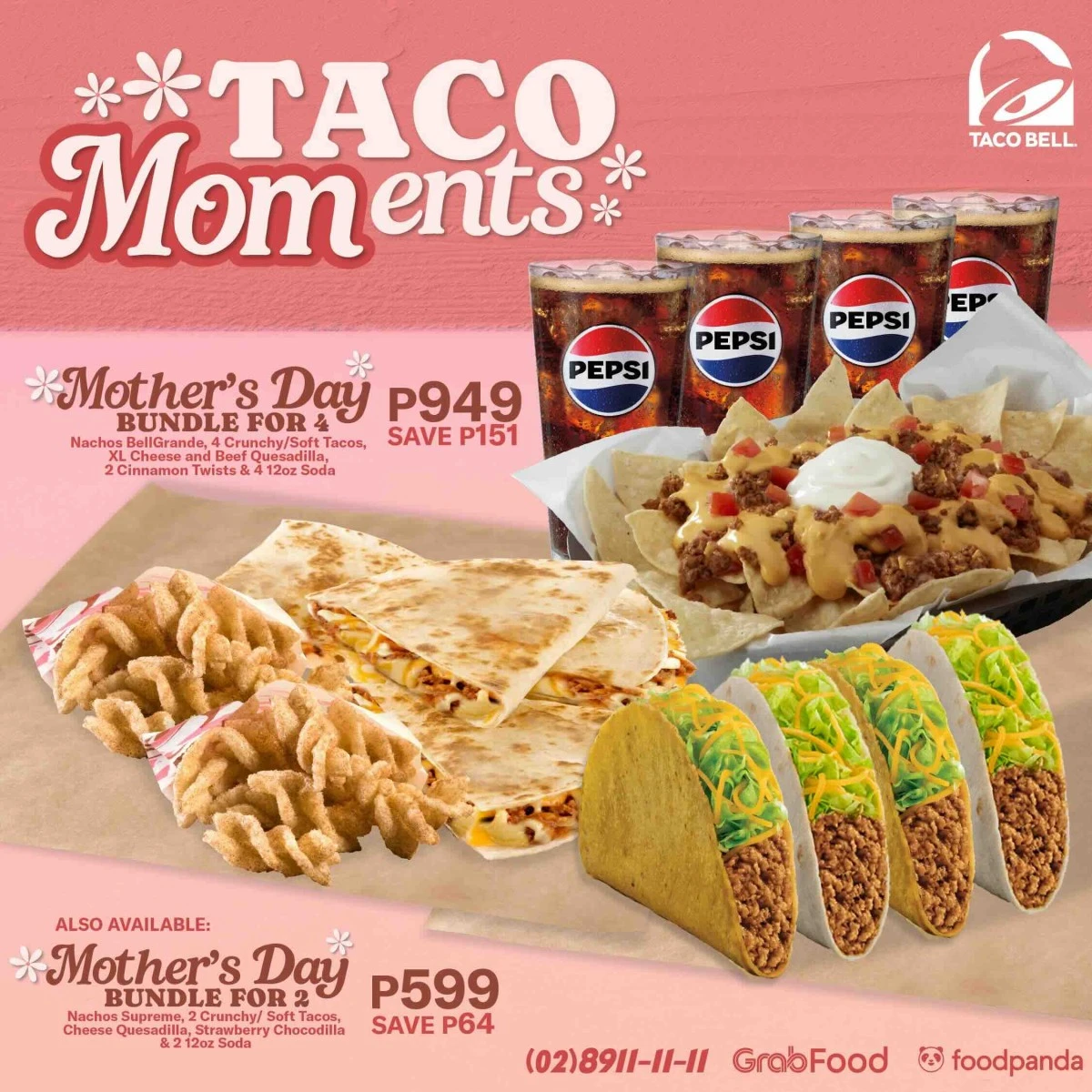 Maybe your child doesn’t cook (yet), but they can still pull off a fun surprise. Taco Bell’s bundles are perfect for a laid-back Mother’s Day movie night at home. For just P599, the bundle for two includes a Nacho Supreme, two crunchy or soft tacos, a Cheese Quesadilla, a Strawberry Chocodilla, and two 12-oz iced sodas. Feeding a bigger group? The bundle for four, priced at only P949, comes with a Nachos Bell Grande, four tacos, an XL Cheese and Beef Quesadilla, two Cinnamon Twists, and four 12-oz iced sodas. Available for dine-in and takeout at Taco Bell stores nationwide.