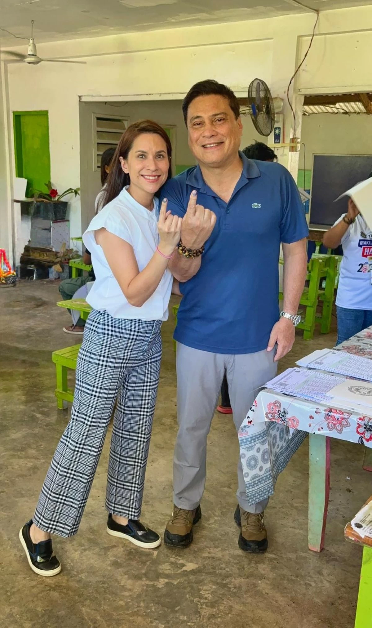 Senate President Francis “Chiz” Escudero and his wife, Heart Evangelista voted early at the Buhatan Integrated School in Brgy. Buhatan, Sorsogon.