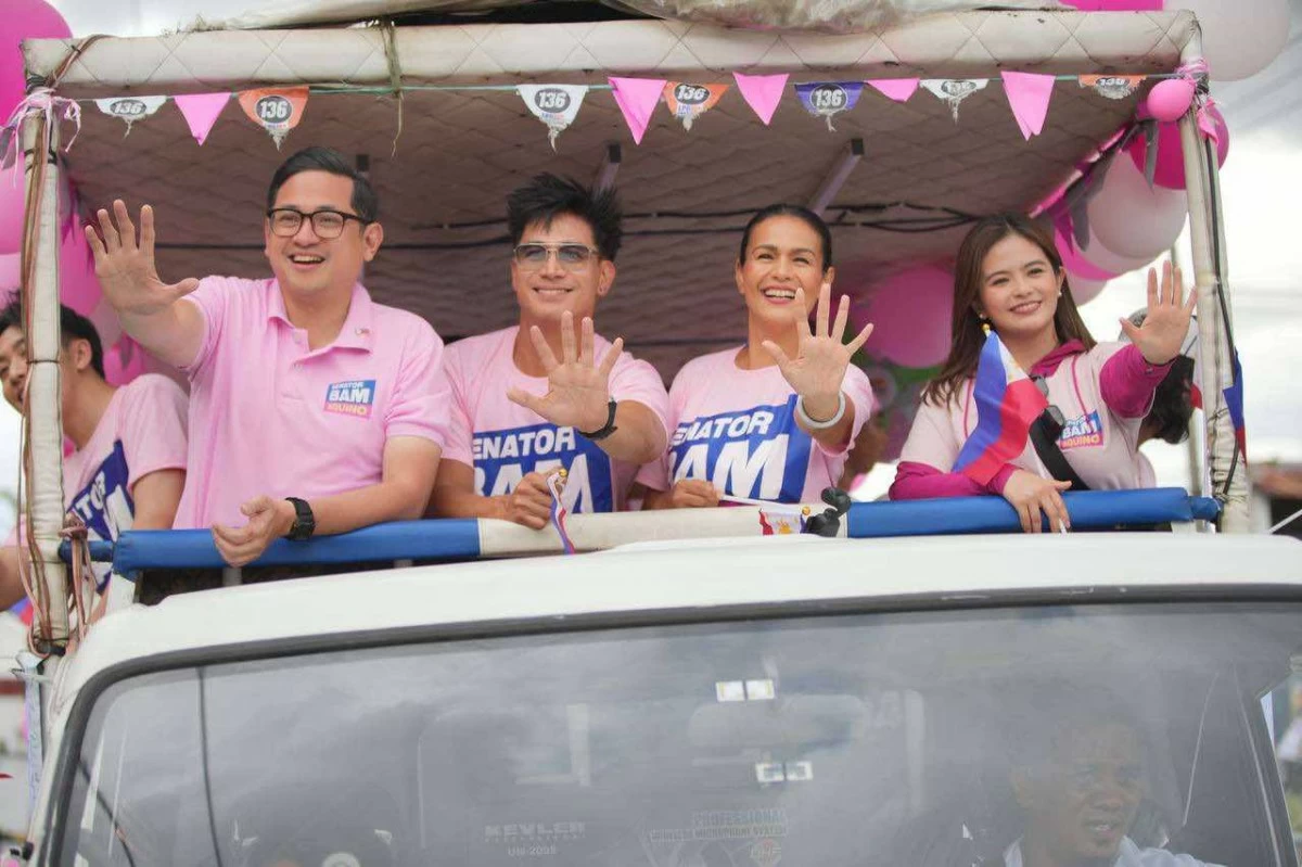 Celebrities Piolo Pascual, Iza Calzado, and Bea Binene join Bam Aquino's motorcade in Metro Manila on May 4, 2025. (Photo from Bam Aquino Media Bureau)