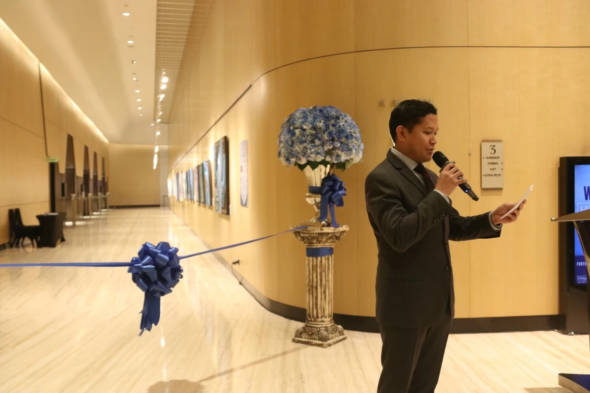 The exhibit officially opened with notable guests, including Cathy Nepomuceno (vice president of SM Hotels and Conventions Corporation), Susanne Tiausas (managing director of Art Lounge Manila), Lara Latosa (featured artist), Camille Genuino (board treasurer of Angat Buhay), and Dr. Deo Florence Onda (associate professor and associate dean for Research, Innovation, Development, and Enterprise-Marine Science Institute, University of the Philippines Diliman).