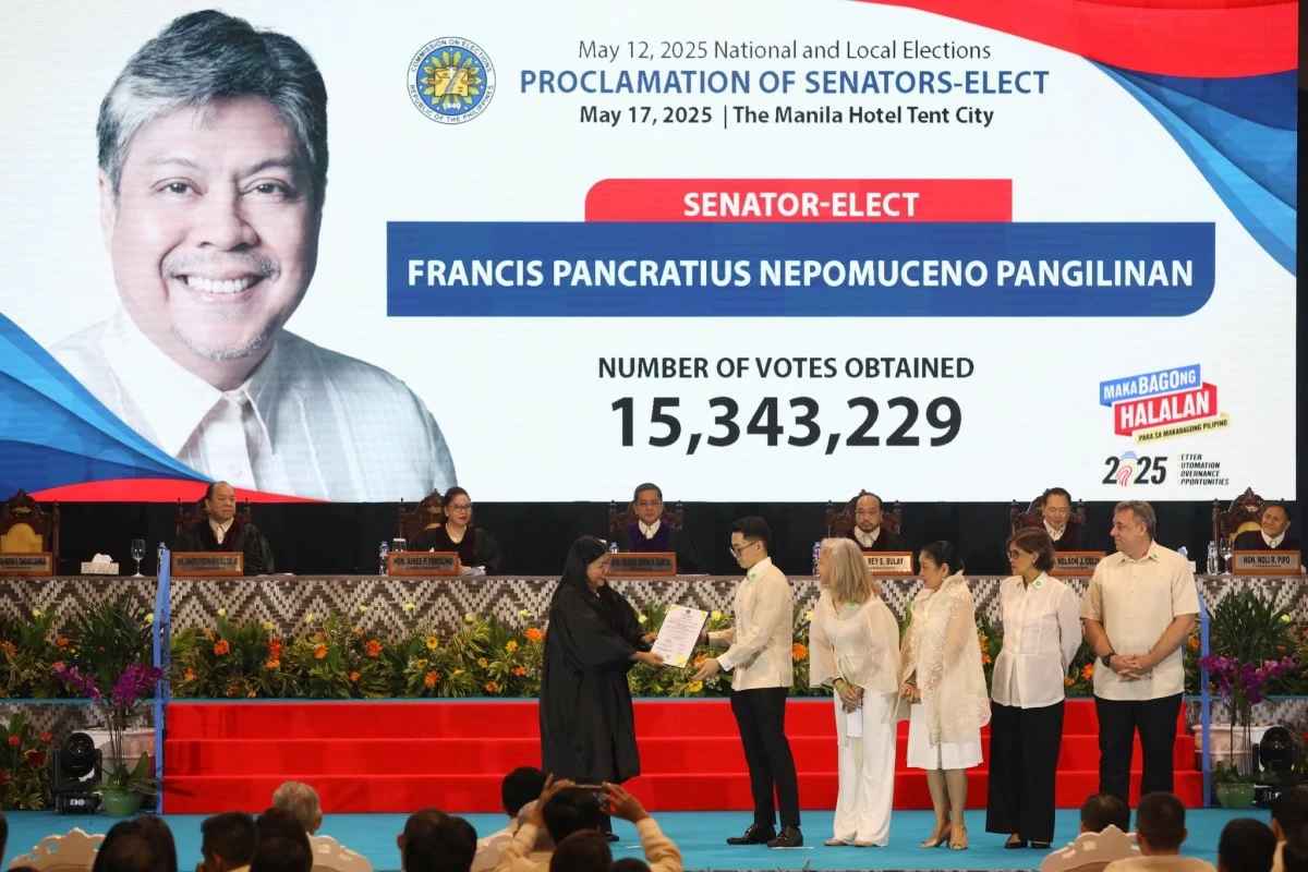 Pangilinan, who was in the United States (US) for the graduation of his daughter Frankie, did not make it to his proclamation at the Manila Hotel on Saturday, May 17.