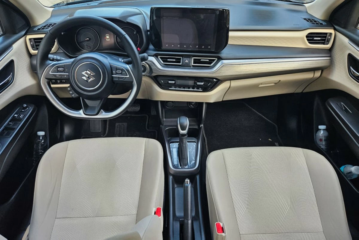 The Dzire’s sub-4-meter length means compromises, but Suzuki packs the cabin cleverly. Front seats are snug yet supportive; rear legroom is tight for six-footers but fine for average-sized adults. The nine-inch touchscreen infotainment system (GLX only) feels lifted from a pricier car, powering six speakers instead of the typical four. Apple CarPlay/Android Auto worked flawlessly. Ergonomics are great as well. Buttons are within reach, the driver’s seat offers excellent visibility, and the trunk (378 liters) swallows a weekend’s worth of luggage. Hard plastics dominate, but at this price, you’re here for function, not opulence.