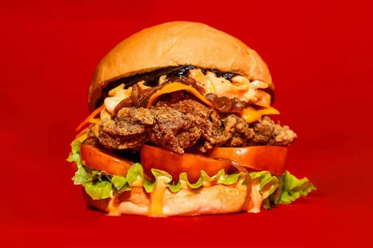 Crispy chicken fillet meets the heat of K-style black bean glaze, cooled down with creamy garlic mayo, lettuce, and kimchi slaw.