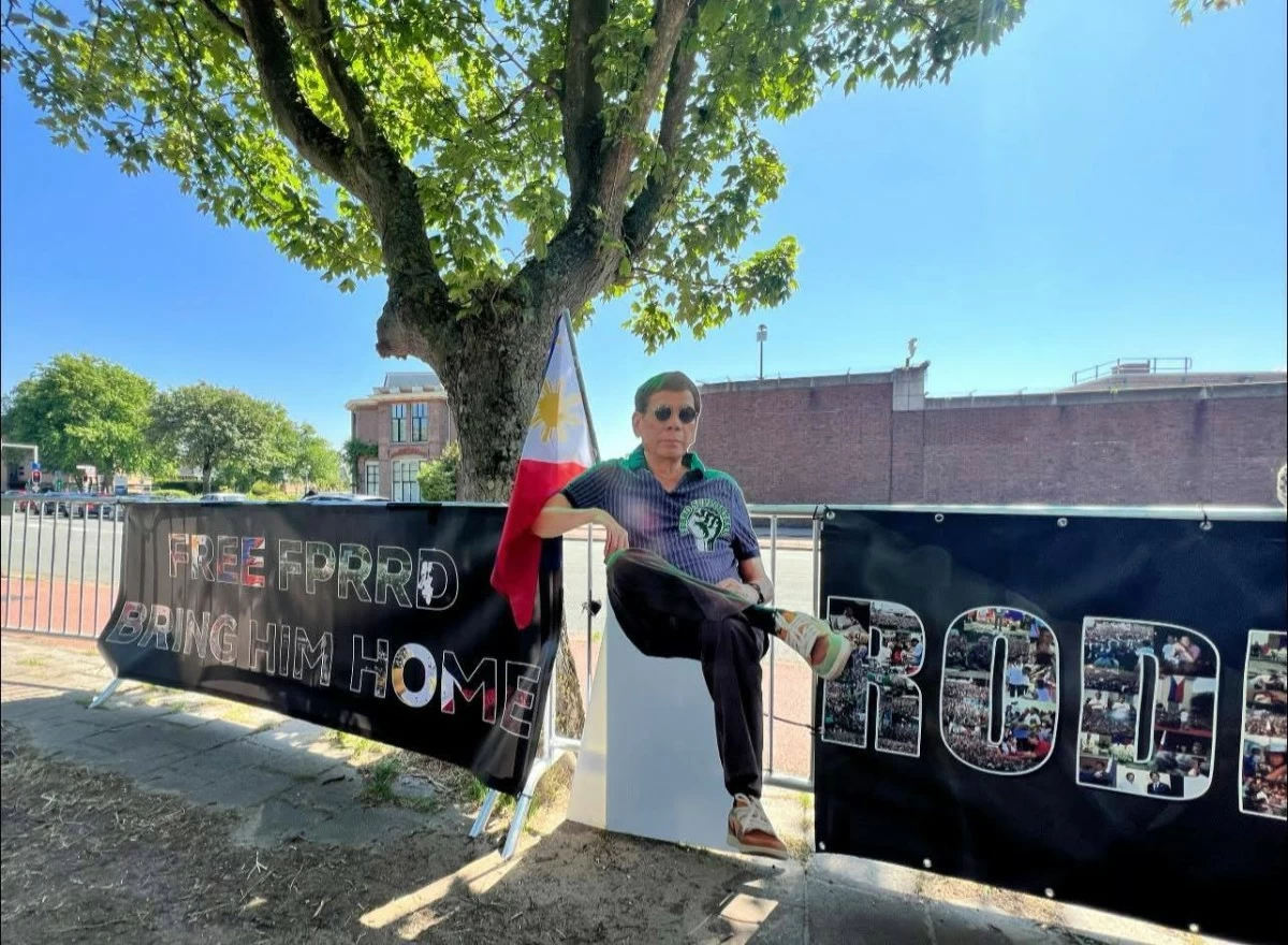 Ex-president Rodrigo Duterte's standee outside the ICC detention facility. (Photo from Alvin & Tourism Facebook page)