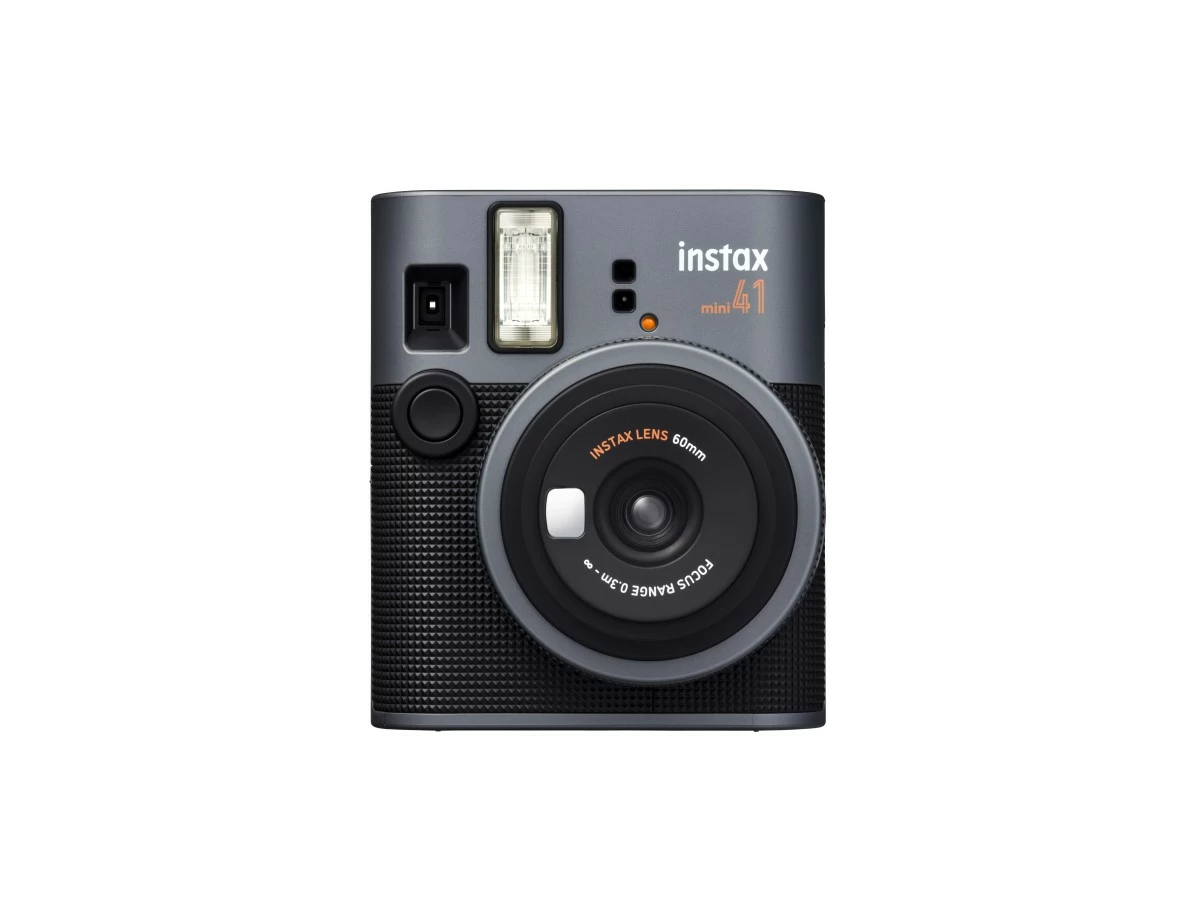 The mini 41 is a stylish analog instant camera that builds on the beloved design and features of the popular instax mini 40. Retaining the classic, vintage-inspired aesthetic that made the mini 40 a favorite among users of all ages, the mini 41 introduces a refreshed, modern look. Its sleek black body, complemented by dark-toned silver and a pop of orange, adds a bold, fashionable edge, making it not just a camera, but a statement accessory.
