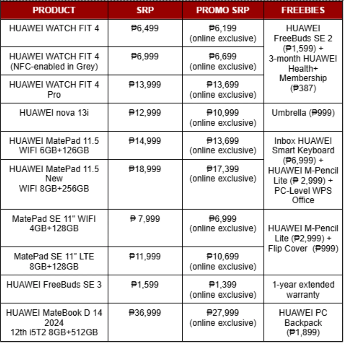 Check out these exciting offers on select HUAWEI devices, starting June 5, 8:00PM until June 6, 11:59PM. Collect platform vouchers to get 15% off on purchases worth at least PHP 1,500 on Shopee. Get up to PHP 1,200 off on purchases worth at least PHP 7,999 and get PHP 500 off on purchases worth a minimum of PHP 3,999 exclusively on Lazada. Grab vouchers worth PHP 600 for the HUAWEI WATCH FIT 4 Series on TikTok. No minimum spend required.