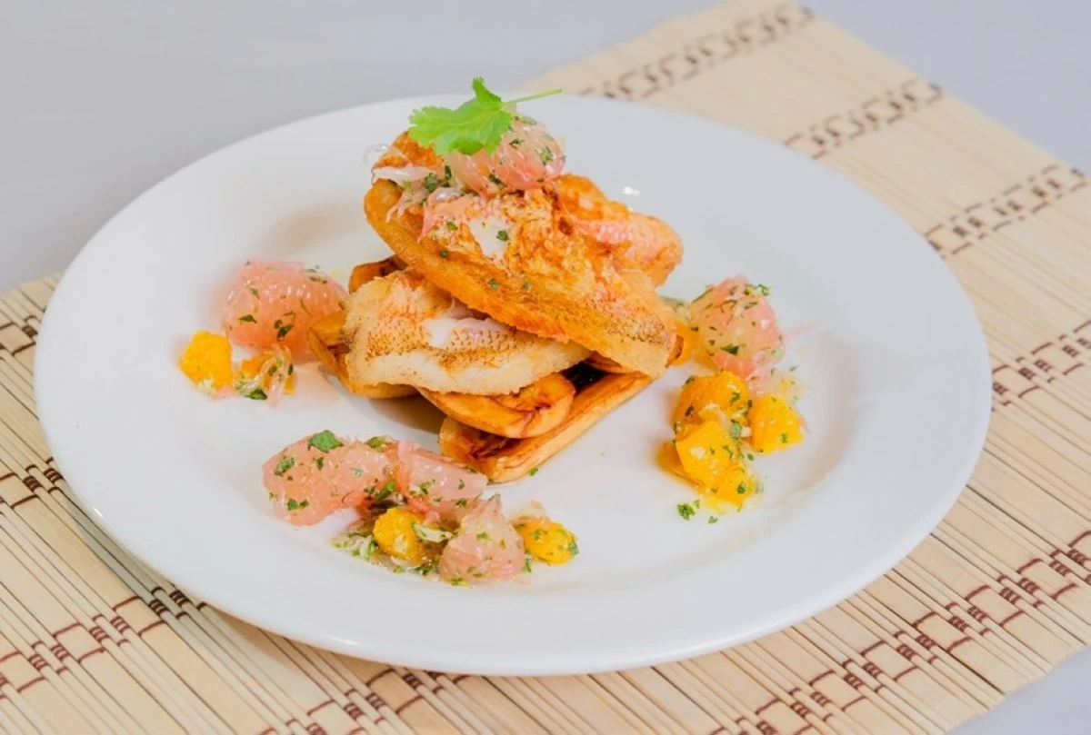 At Café Summit Naga, Chef Francis “Kiko” Joseph Tugnao presents Maya-maya, Kahel, at Lukban. Snapper is paired with pomelo, orange, and saba banana in a bright and savory combination. “Maya-maya, Kahel, at Lukban is my way of celebrating the rich, fresh flavors of the Philippines, using ingredients that are both local and beloved,” said Chef Kiko. The dish emphasizes freshness and citrus, highlighting the natural sweetness of the fish.