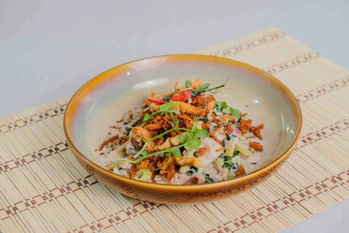In Tagaytay, Chef Ernie Baculio reinterprets palabok with a playful format. His Crispy Handrolled Palabok retains the shrimp, garlic, and savory essence of the original but wraps it in a crisp shell, turning it into a modern, bite-sized dish. “I wanted to keep the soul of palabok—its bold, savory flavors and comforting texture—but present it in a form that excites curiosity,” said Chef Ernie.
