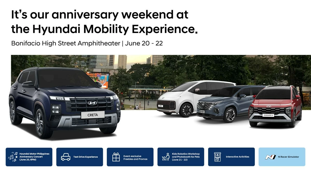 - Hyundai Motor Philippines Inc. (HMPH) is holding a special run of the Hyundai Mobility Experience this weekend in commemoration of its third anniversary, featuring the just-launched Kona Hybrid, new Creta, and special N models.