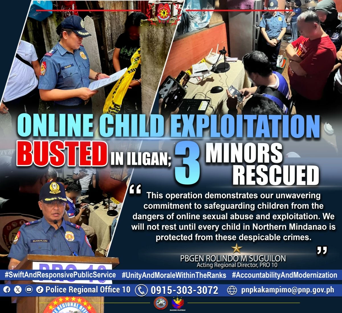 “This operation demonstrates our unwavering commitment to safeguarding children from the dangers of online sexual abuse and exploitation. We will not rest until every child in Northern Mindanao is protected from these despicable crimes,” he said.