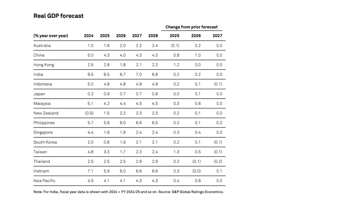 “Domestic demand resilience is particularly relevant in limiting the economic slowdown in economies less exposed to goods exports such as India and the Philippines,” said S&P Asia-Pacific chief economist Louis Kuijs and economist Vishrut Rana.