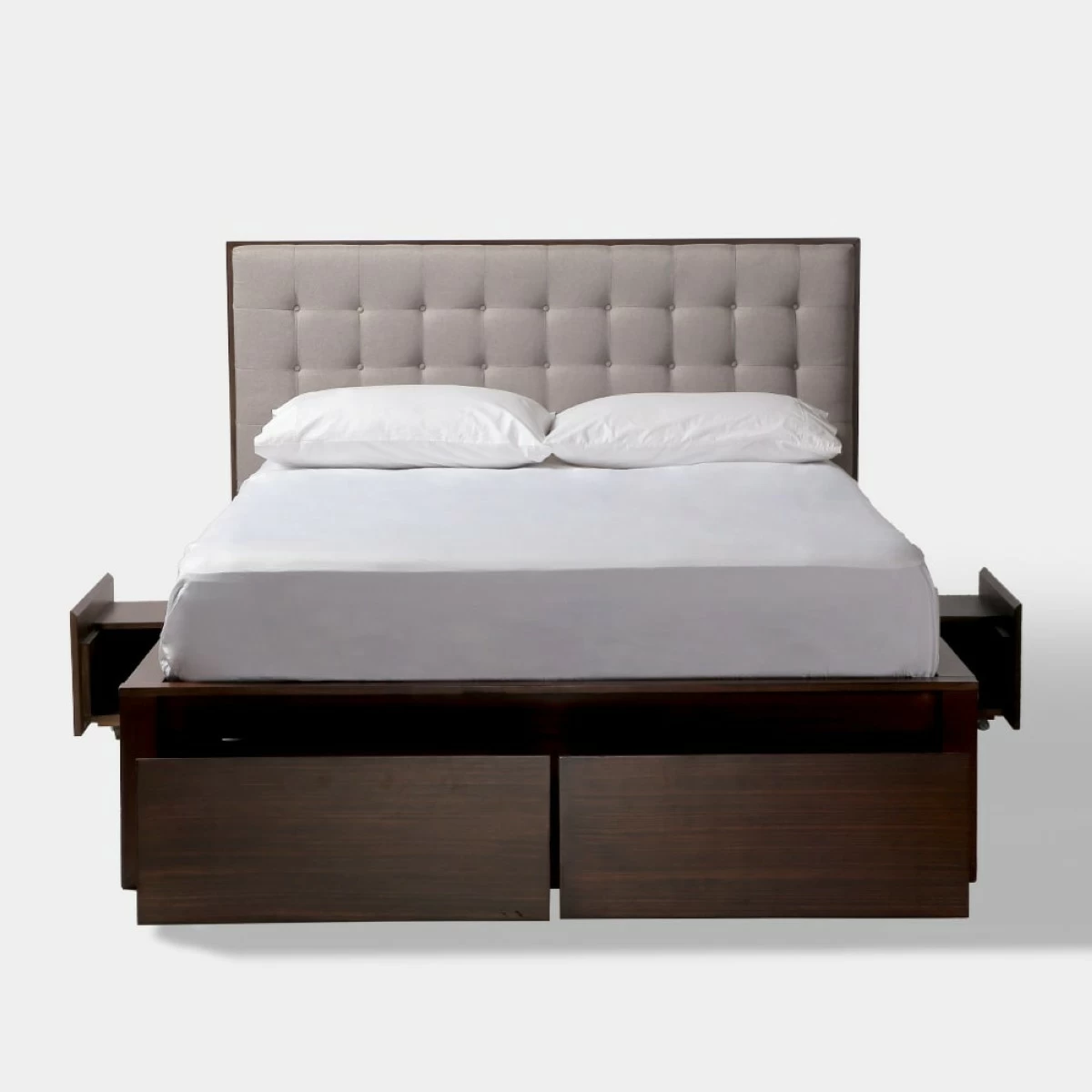 In the bedroom, under-bed storage for off-season clothing or linens and wardrobes with thoughtful internal layouts help streamline routines. Nightstands with drawers and charging ports keep essentials organized but out of sight.