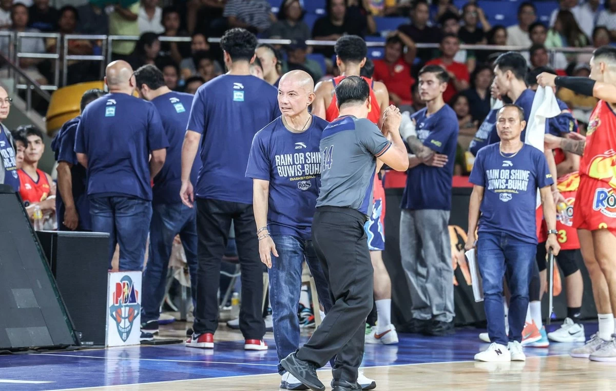 Rain or Shine players and coaching staff sported t-shirts with ‘Buwis-Buhay’ prints on the sidelines of Game 2.