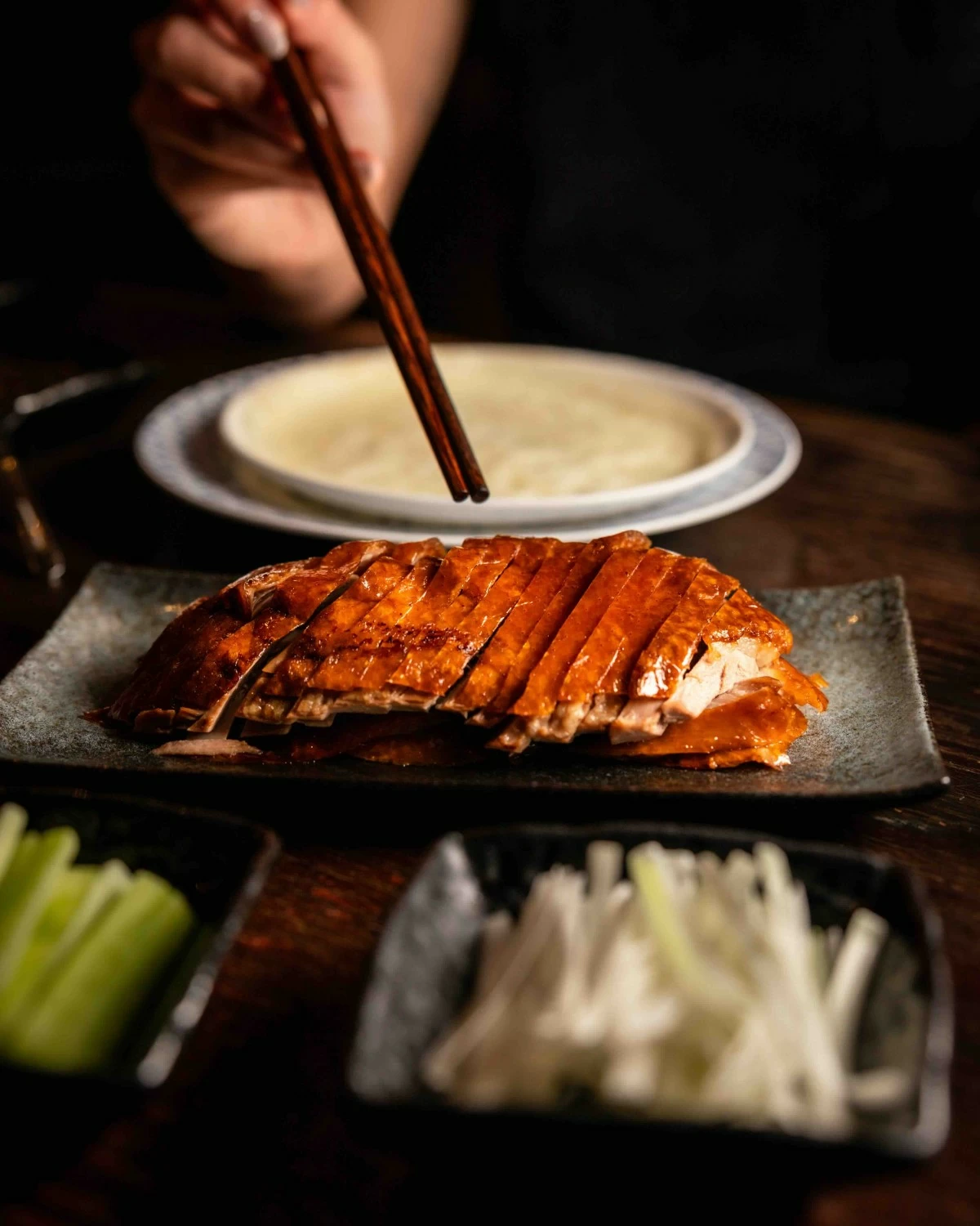Mott 32 is not just a restaurant. It is a stage. We entered into low lighting and lacquered wood, the kind of place where conversations soften and cocktails gleam. We ordered their signature applewood-roasted Peking duck, served in two acts. First came the skin, crisp and almost candied, dipped in sugar or hoisin and wrapped with scallion into thin pancakes. Then slices of duck breast, rich and tender, laid over steamed buns like edible origami. Dim sum followed. Black truffle siu mai exploded with earthiness, while xiao long bao carried hot broth that burned in the best way. Each dish was a contrast. Delicate wrappers holding punchy flavor, spice and silk, salt and sweet. We drank cocktails with names we could not pronounce but flavors we could not forget. One carried Szechuan pepper that made our tongues dance, another had chrysanthemum and gin that calmed everything down.