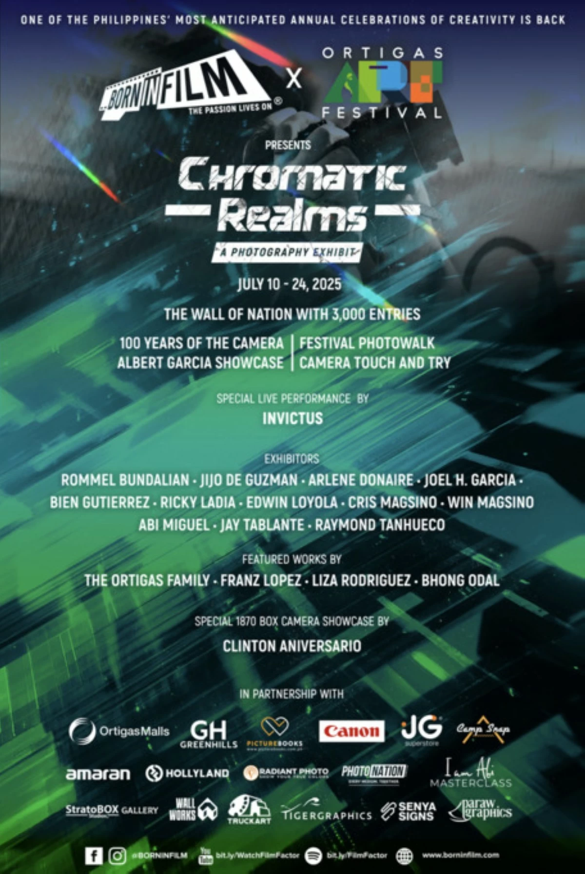 At the heart of the exhibit is the highly anticipated comeback of The Wall of Nation—a monumental installation built from over 3,000 photographs submitted by the Born in Film community across the Philippines and the world. Representing thousands of personal stories, portraits, and shared creative energy, the Wall serves as a collective portrait of connection through photography.