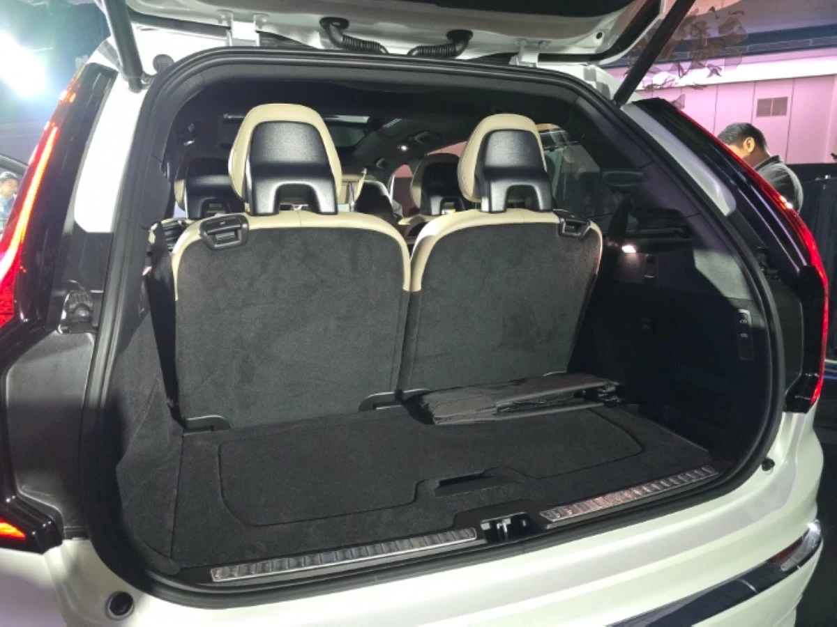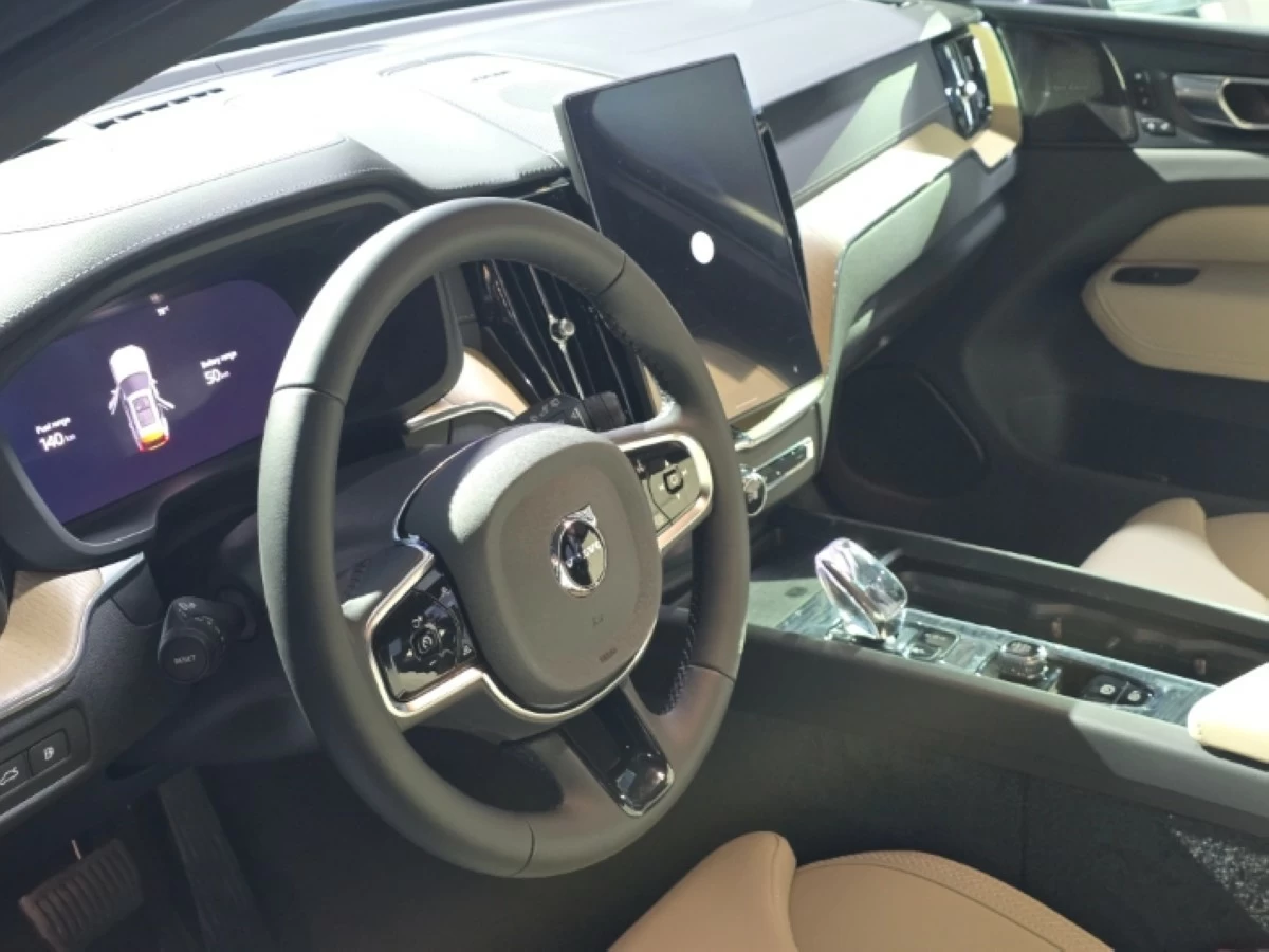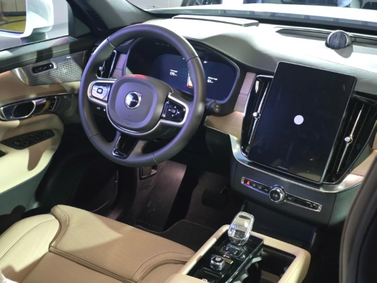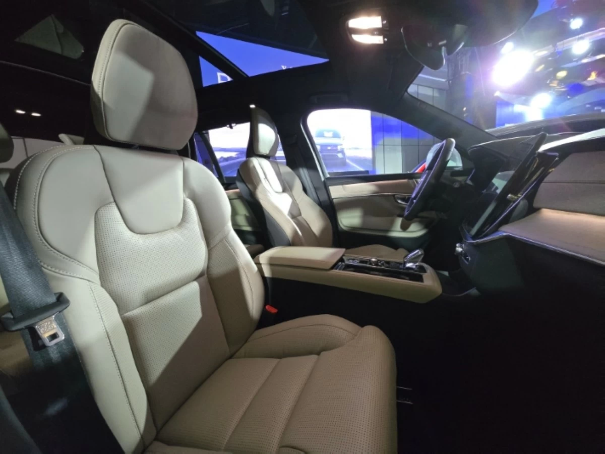 The Volvo XC90 T8 Ultra Plug-in Hybrid serves as the flagship SUV and accommodates up to seven passengers. It is powered by a 2.0-liter four-cylinder petrol engine paired with an electric motor, delivering a combined output of 462 PS and 709 Nm of torque. The powertrain drives all four wheels through an e-AWD system. The XC90 T8 features an 18.8 kWh lithium-ion battery, which allows for up to 77 kilometers of pure electric driving. Standard features include a 360-degree camera, collision avoidance systems, and an interior designed to minimize driver distraction with Nappa leather upholstery and a portrait-oriented center display. It is priced at ₱5,450,000.