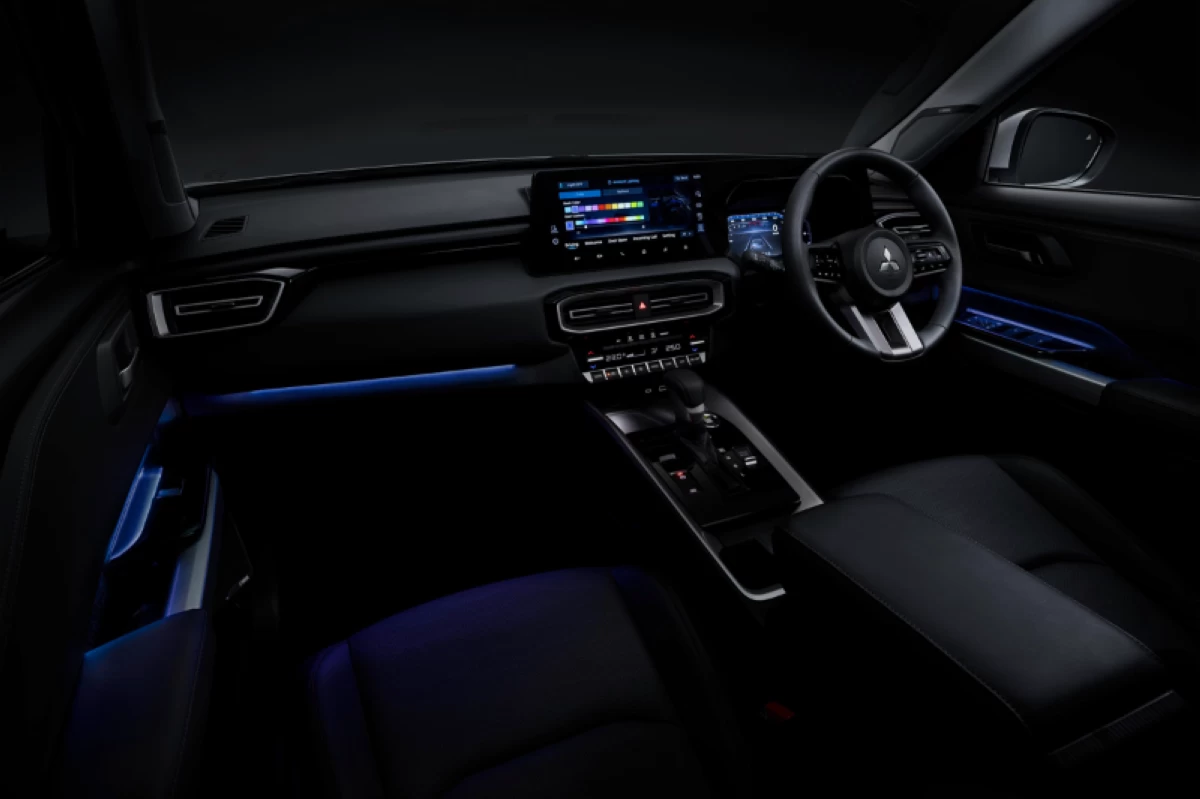 Styling cues are closely aligned with the smaller X-Force, with shared elements such as the Dynamic Shield front grille, T-shaped LED lighting, and a similarly sculpted C-pillar and tailgate. At the rear, a new “Hexaguard Horizon” design motif, reminiscent of the Pajero’s spare tire enclosure, adds character while reinforcing Mitsubishi’s SUV lineage.