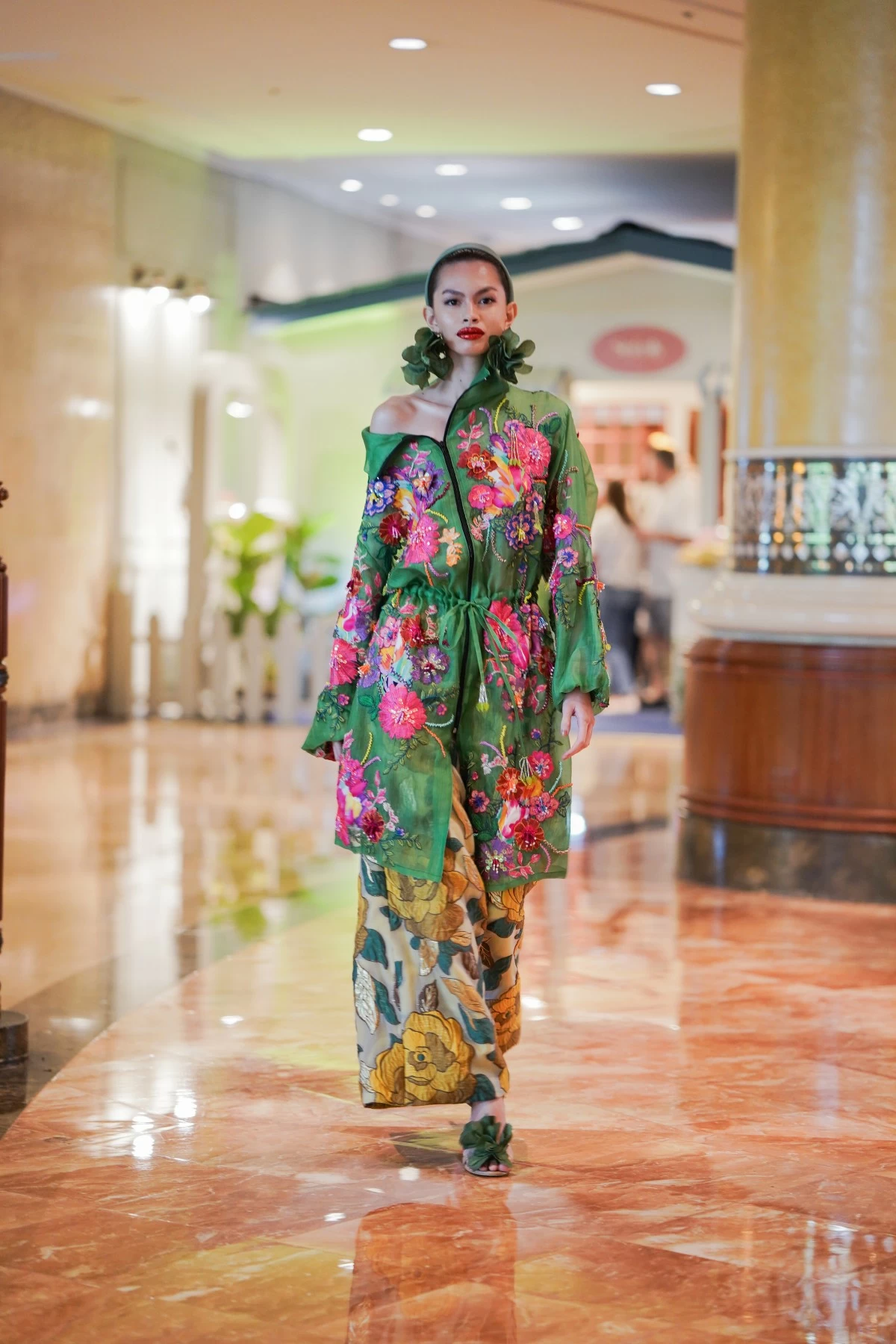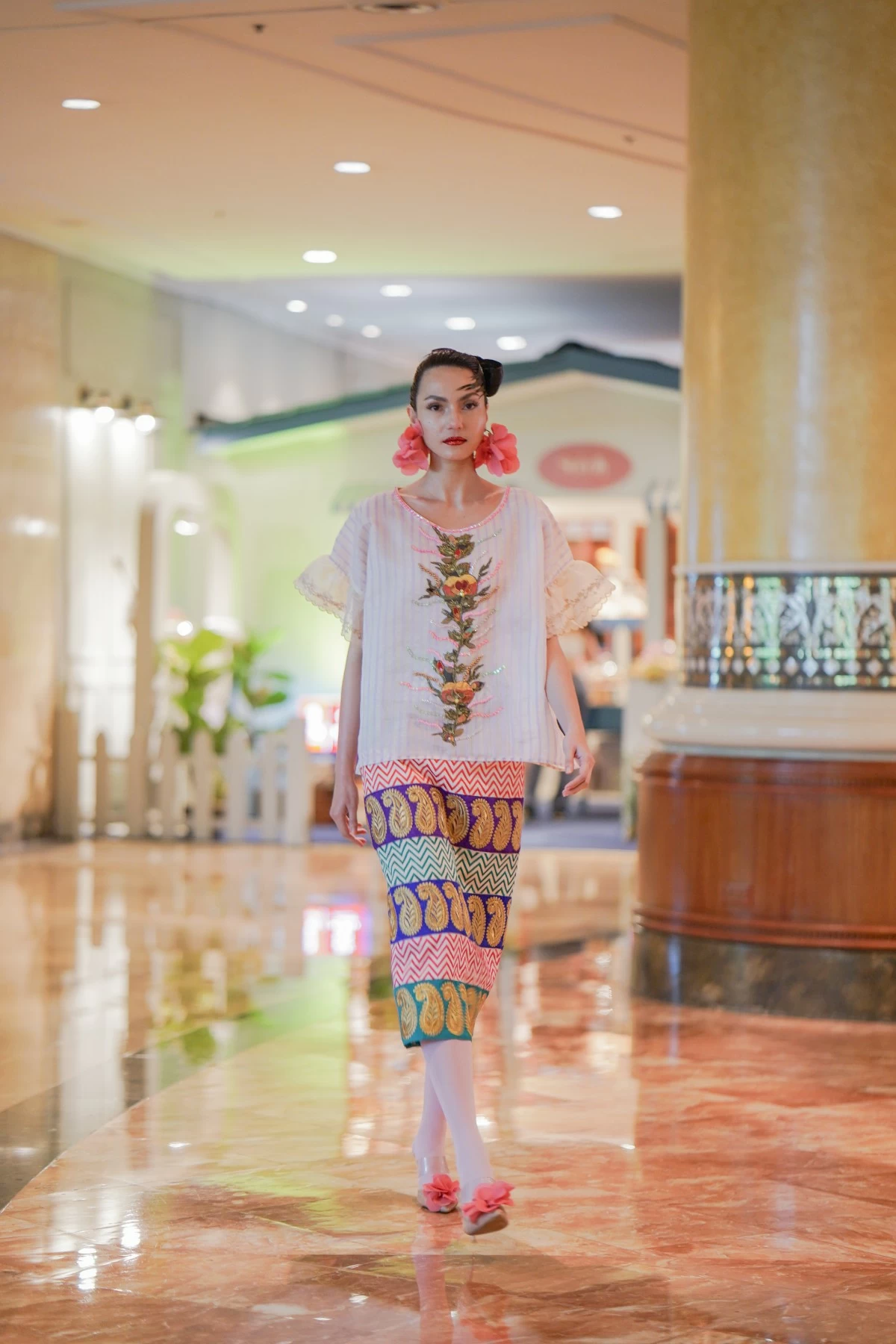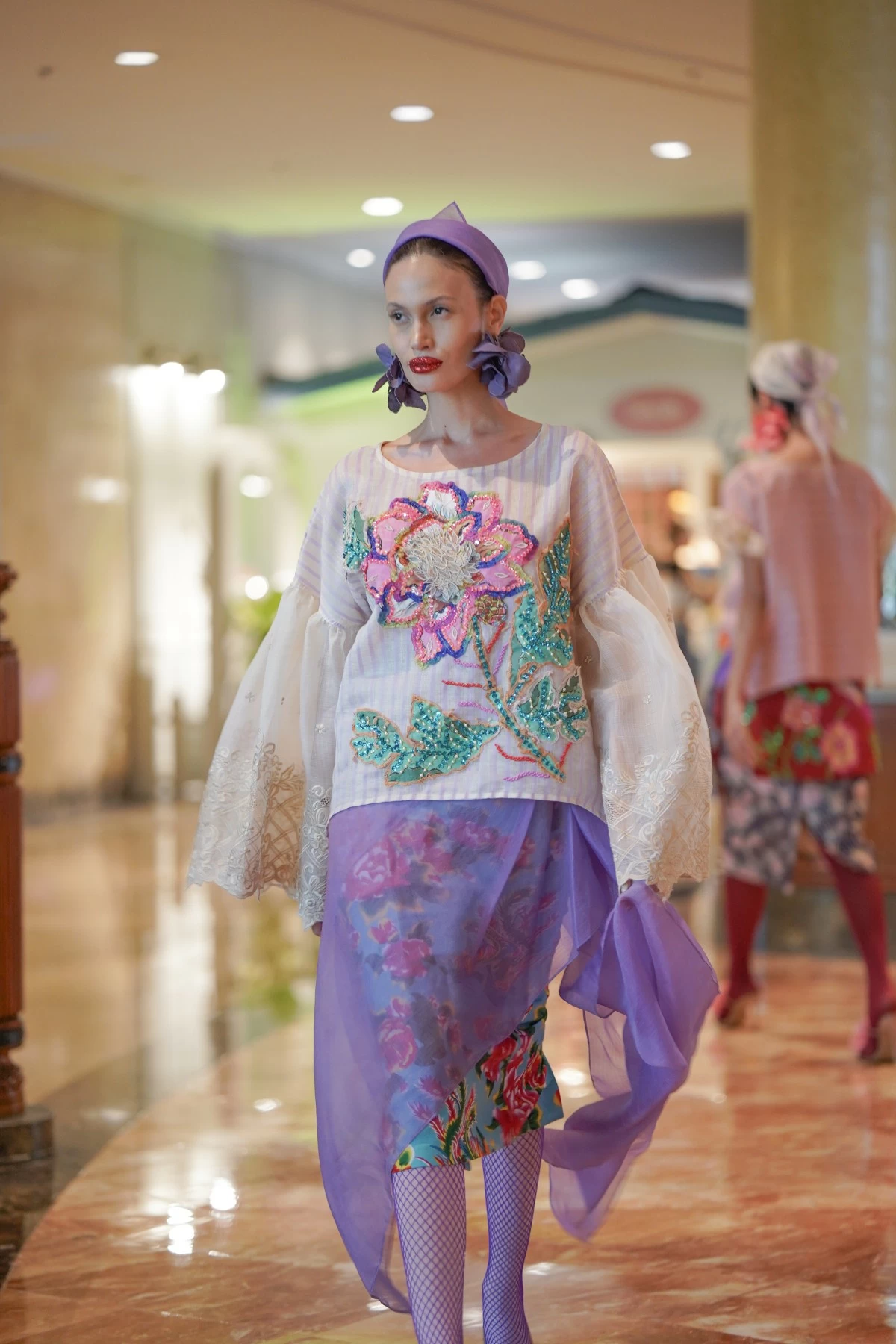 On July 15, 2025, the Lobby Lounge of Shangri-la Makati returned to its tradition of hosting intimate fashion presentations by hosting the preview of the “Heirloom” collection. Gracing the aisles of the lounge were contemporary and playful takes on Filipinowear through multifunctional garments such as peacoats, parkas, skirts, drop-waist dresses, cover-ups, kimonos, and piña tops. Each piece was crafted using local textiles and adorned with patchwork, embroidery, hand painting, among others.