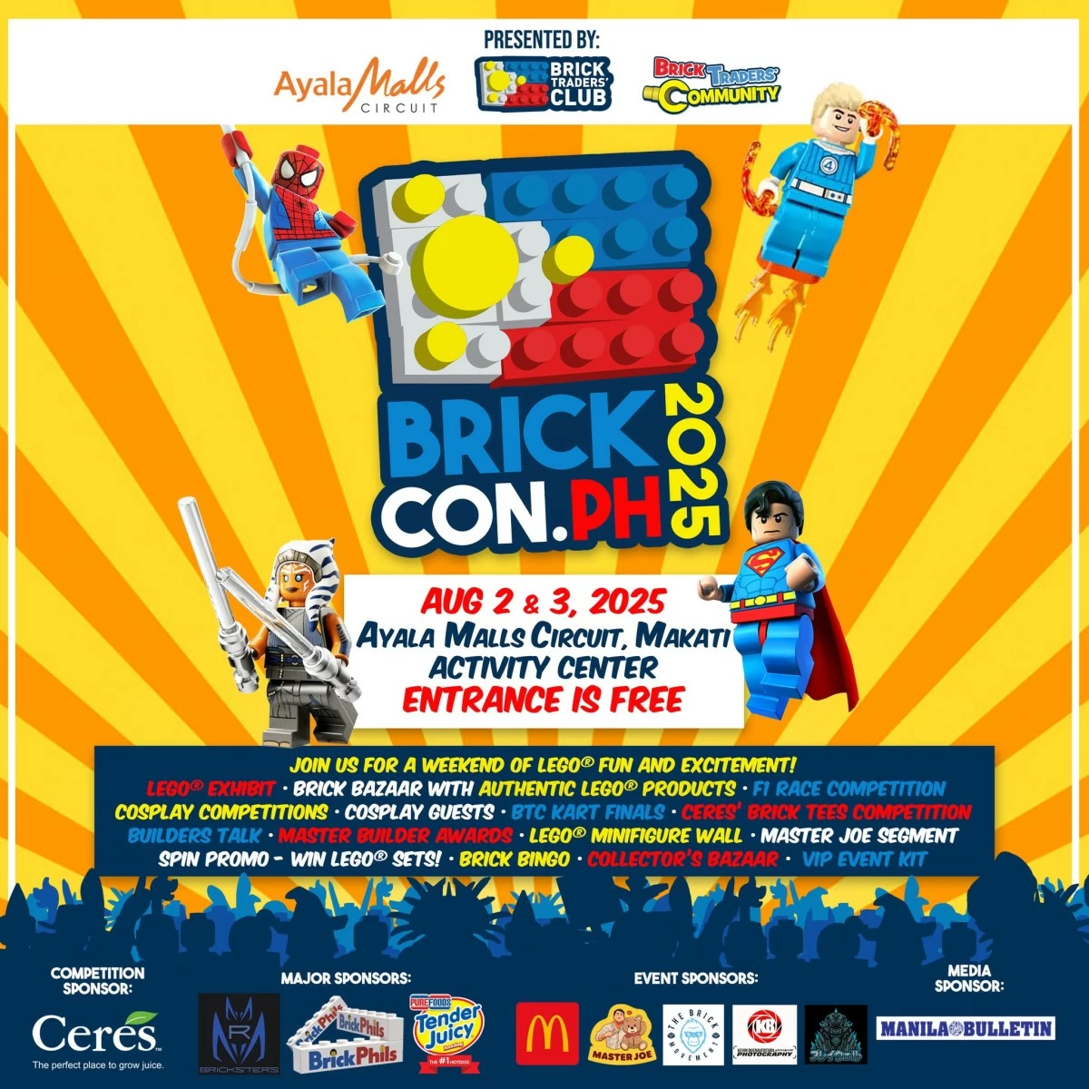 The Brick Traders Club announces the return of BrickCon.PH2025, the country’s biggest LEGO fan convention, happening August 2 and 3, 2025 at the Activity Center of Ayala Malls Circuit, Makati. With free admission for all, the event invites builders, collectors, families, and vendors to connect and have a great time.