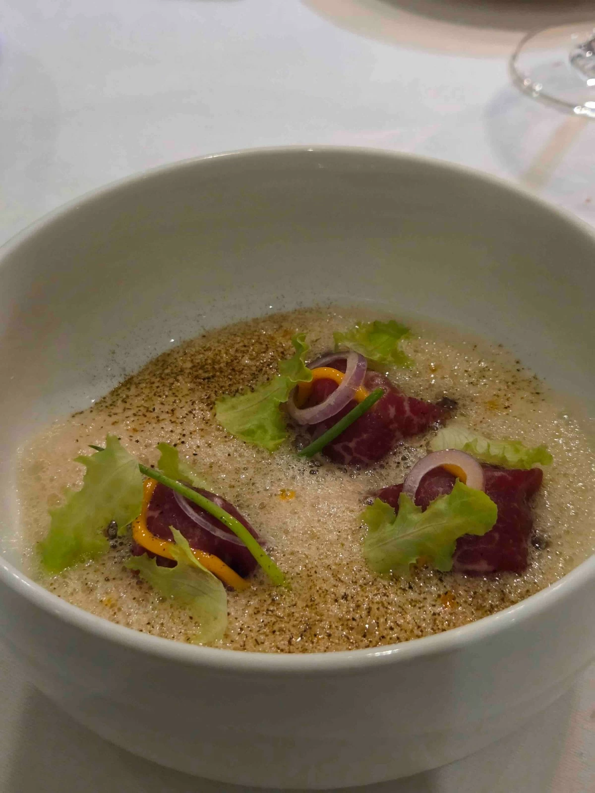 The second course Charred Tomato Broth and Beef had highlights of smokiness from the charred tomatoes which infused the tender beef with a hearty depth of flavor.