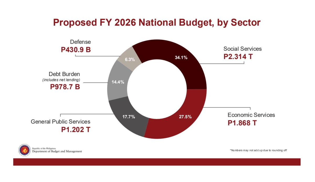 Based on the NEP, the largest allocation will go to social services—which cover education, health, and social protection—at ₱2.31 trillion or 34.1 percent of the total budget.