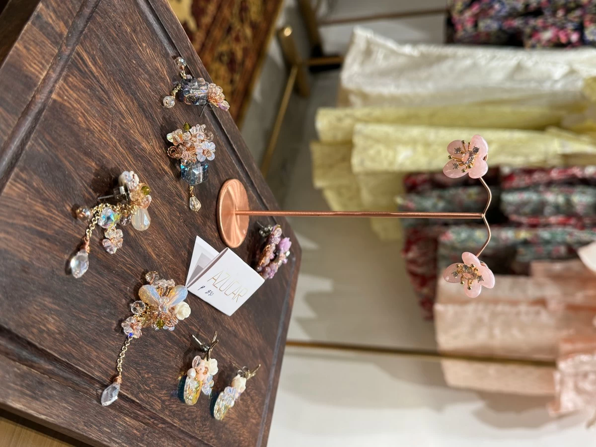 To enhance the shopping experience, the store features Arleen’s curated lifestyle finds from all over the country—fairly priced Filipino-made accessories like handmade crystal beaded bags, earrings, and necklaces, along with minaudières made with leather and local textiles like t’nalak. Artisan-crafted Solano lamps by artist Michelle Lao are also available. She notes, “Her lamps beautifully complement the clothing and complete the overall look and feel of the store.”