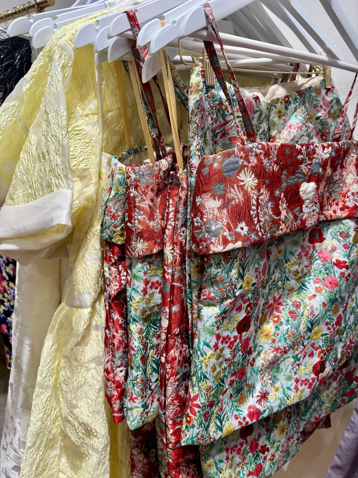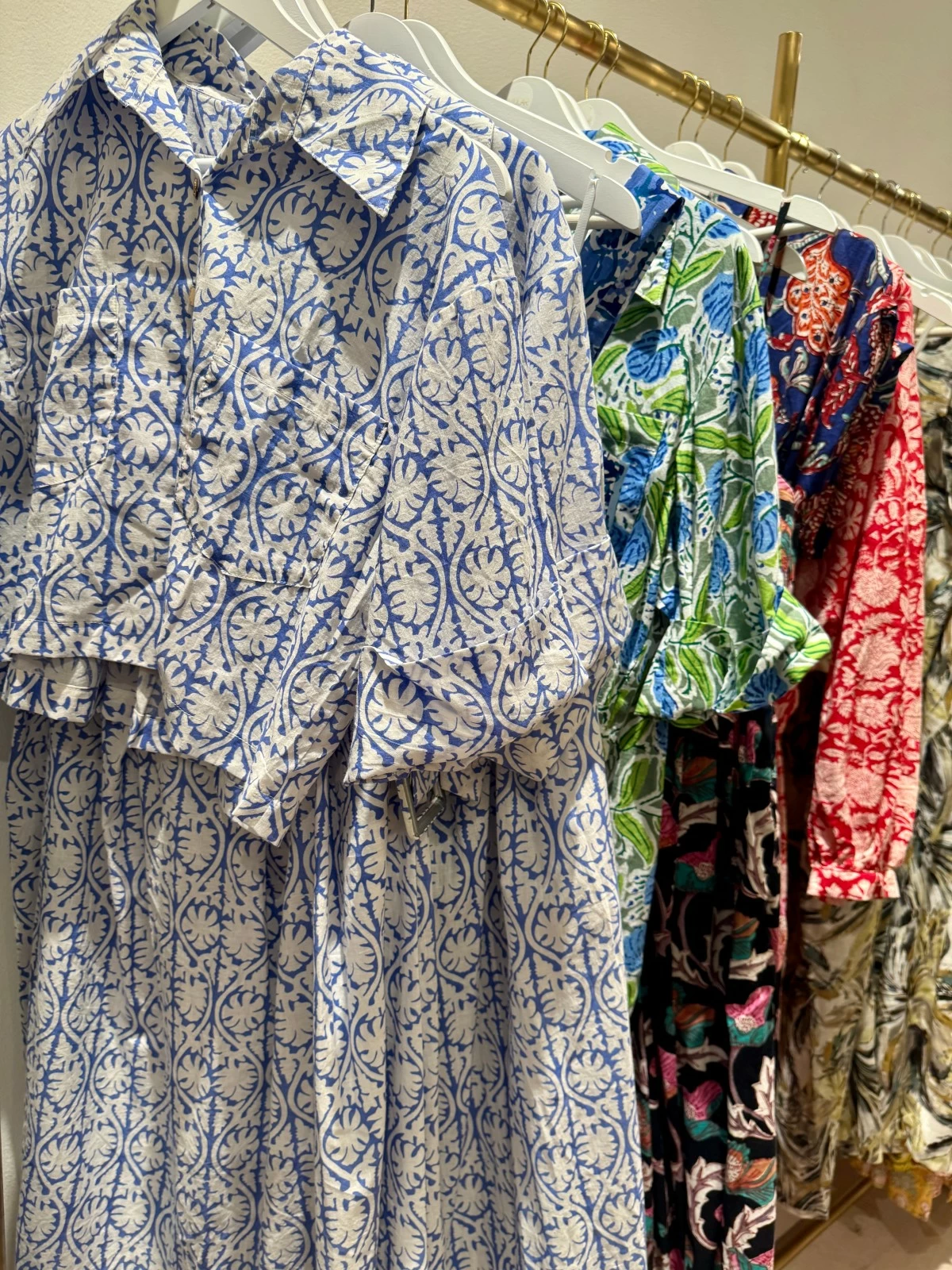 As the designer guided us through the different racks of clothing, we observed a wide variety of fabrics. Each one is distinct from the other.