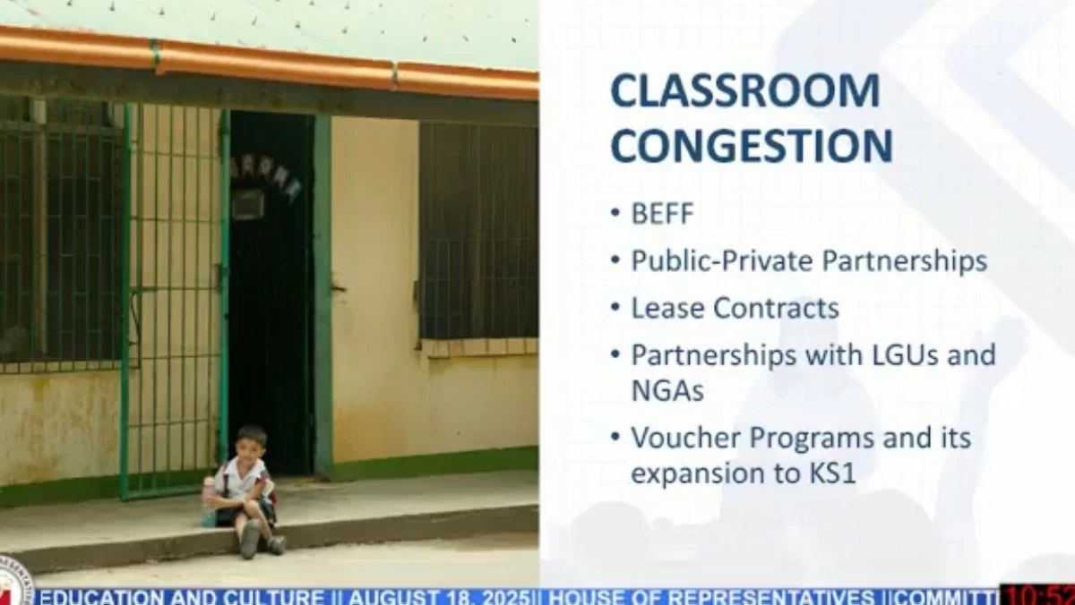 During the House Committee on Basic Education and Culture hearing Monday, Aug. 18, DepEd presented its plans to address the shortage of 165,000 classrooms in the country.
