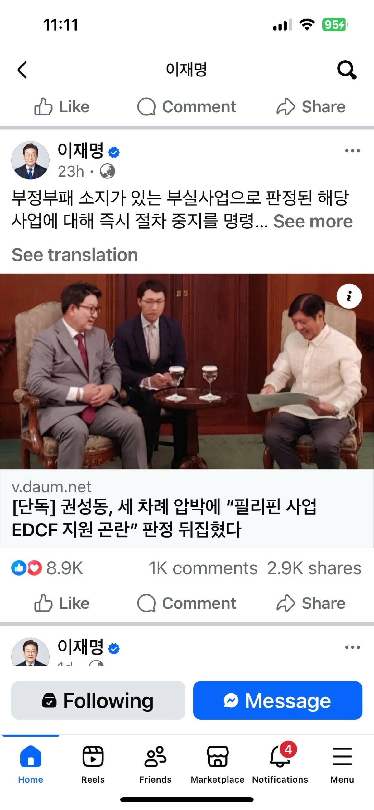 The President posted on Facebook the link to an investigative report by Hankyoreh 21, stating the project in question as the proposed building of modular bridges in 350 locations in the Philippines, of which the Philippine government asked the South Korean government for loans.