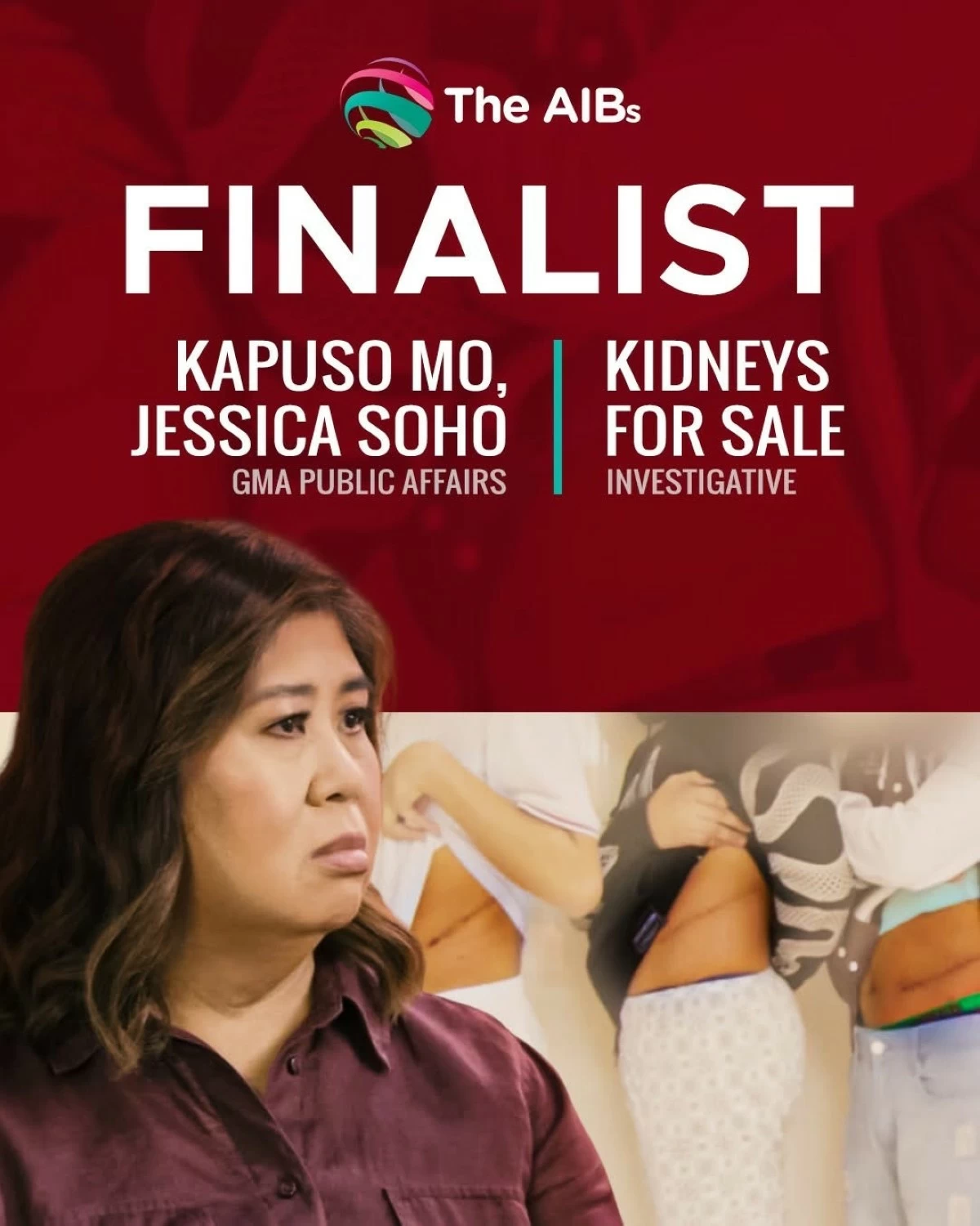 GMA Public Affair’s top-rating and multi-awarded program Kapuso Mo, Jessica Soho (KMJS) is shortlisted under the Investigative category for its “Kidneys for Sale” story. The episode exposed the rampant and more organized online trade of kidneys in the country. Hosted by the country’s most awarded and most trusted broadcast journalist Jessica Soho, KMJS is nominated alongside other investigative reports from the US, Canada, the United Kingdom, Qatar, Ukraine, and Singapore.