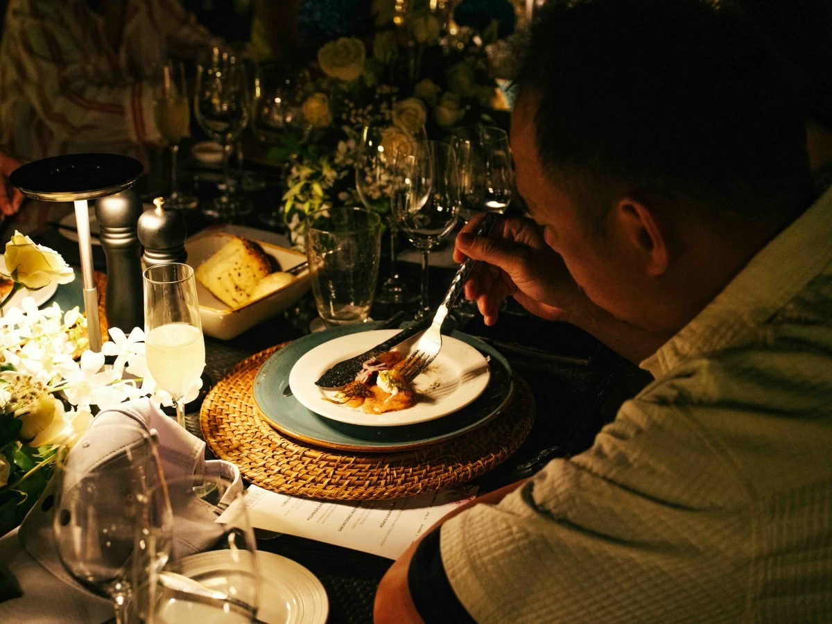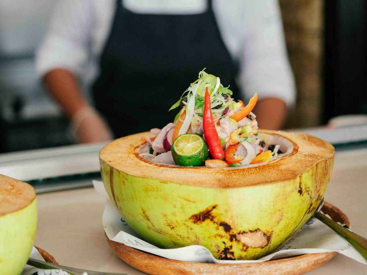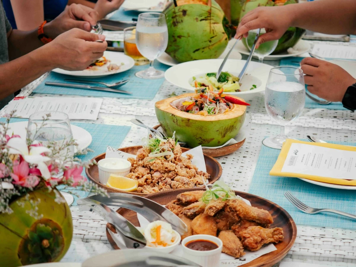 Dinner at Cowrie Cove was the sea at its freshest. Tuna kinilaw was sharp with vinegar and kissed by chili. Charred wagyu paired with octopus offered smoke and depth, while Mozambique-baked barramundi arrived golden, its flesh soft and carrying the salt of the tide. Each dish felt elemental, matched by the sound of waves and the changing light.