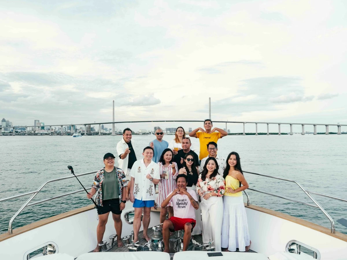 Another day turned seaward with Cebu Cruises. The 85-foot Princess Flybridge yacht stood gleaming, cabins below deck, a jacuzzi bubbling at the stern, a bar stocked for leisure. It carried us to San Vicente Island and Bongan Sandbar, where the sea turned glass-clear. Guests swam, snorkeled, and walked barefoot on the sand. Then champagne flutes clinked, canapés arrived on silver trays, and the sun lowered itself behind the Cebu–Cordova Link Expressway. The moment was staged by nature, but it felt like art.