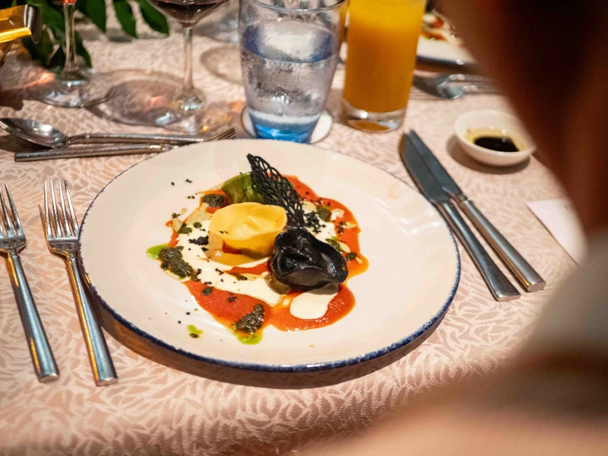 At Acqua, Italy came alive by the sea. Ravioli ai gamberi, stuffed with prawns, sat in a delicate cream sauce. Insalata di mare delivered briny freshness, while pizzas emerged with blistered edges and molten centers. The finale was crema bruciata all’arancia, its sugar crust shattering to reveal orange-scented cream beneath, rich, fragrant, and alive with citrus.