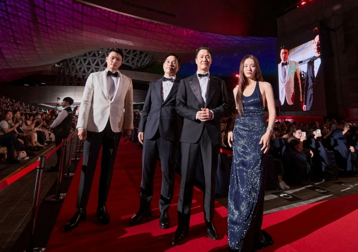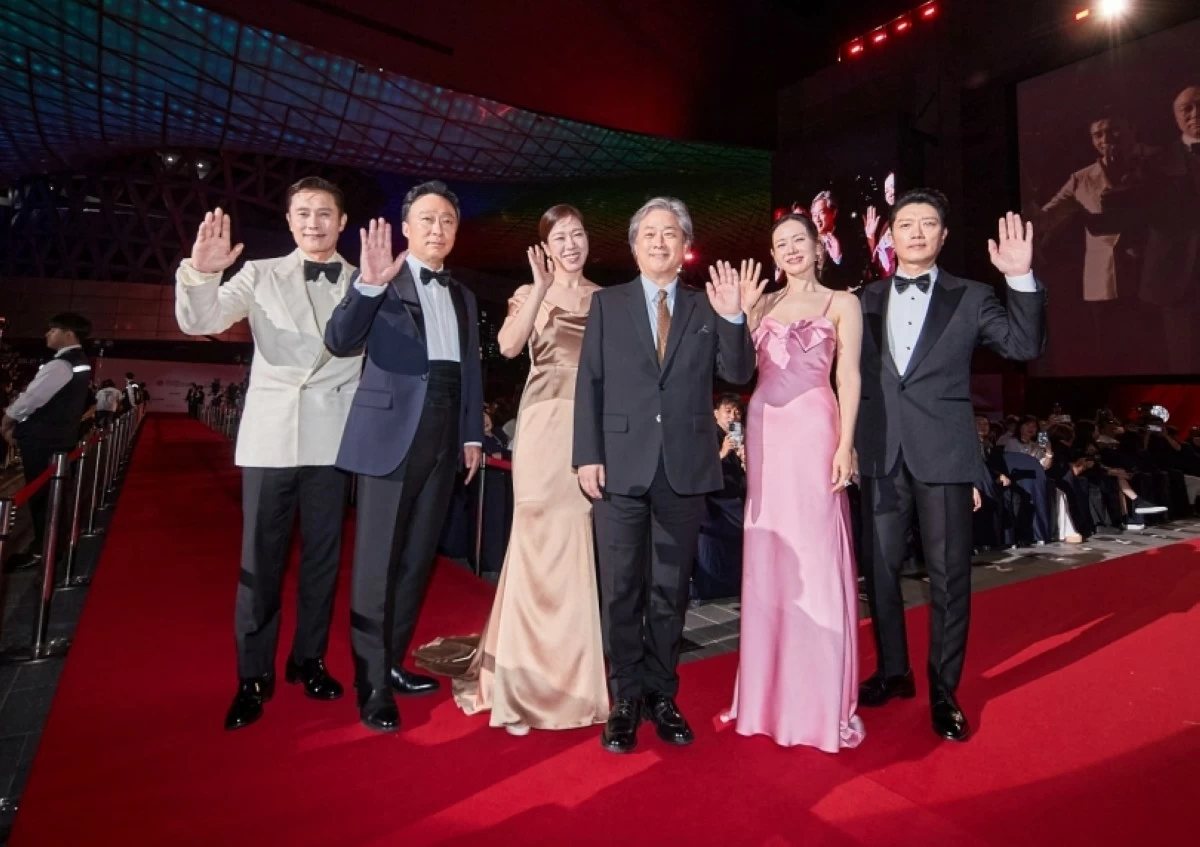 "No Other Choice" cast and director at the opening ceremony of the 30th Busan International Film Festival (Photo courtesy of BIFF)