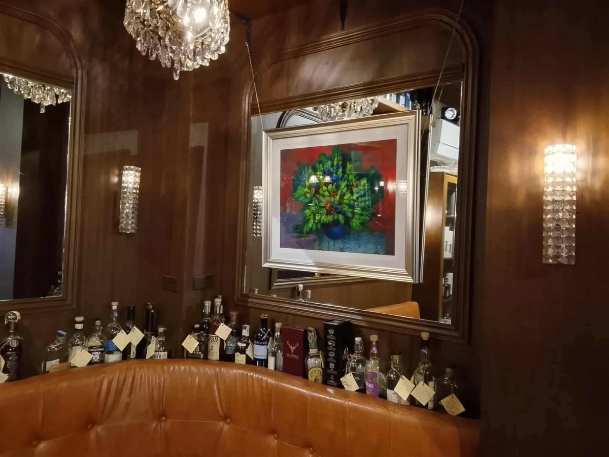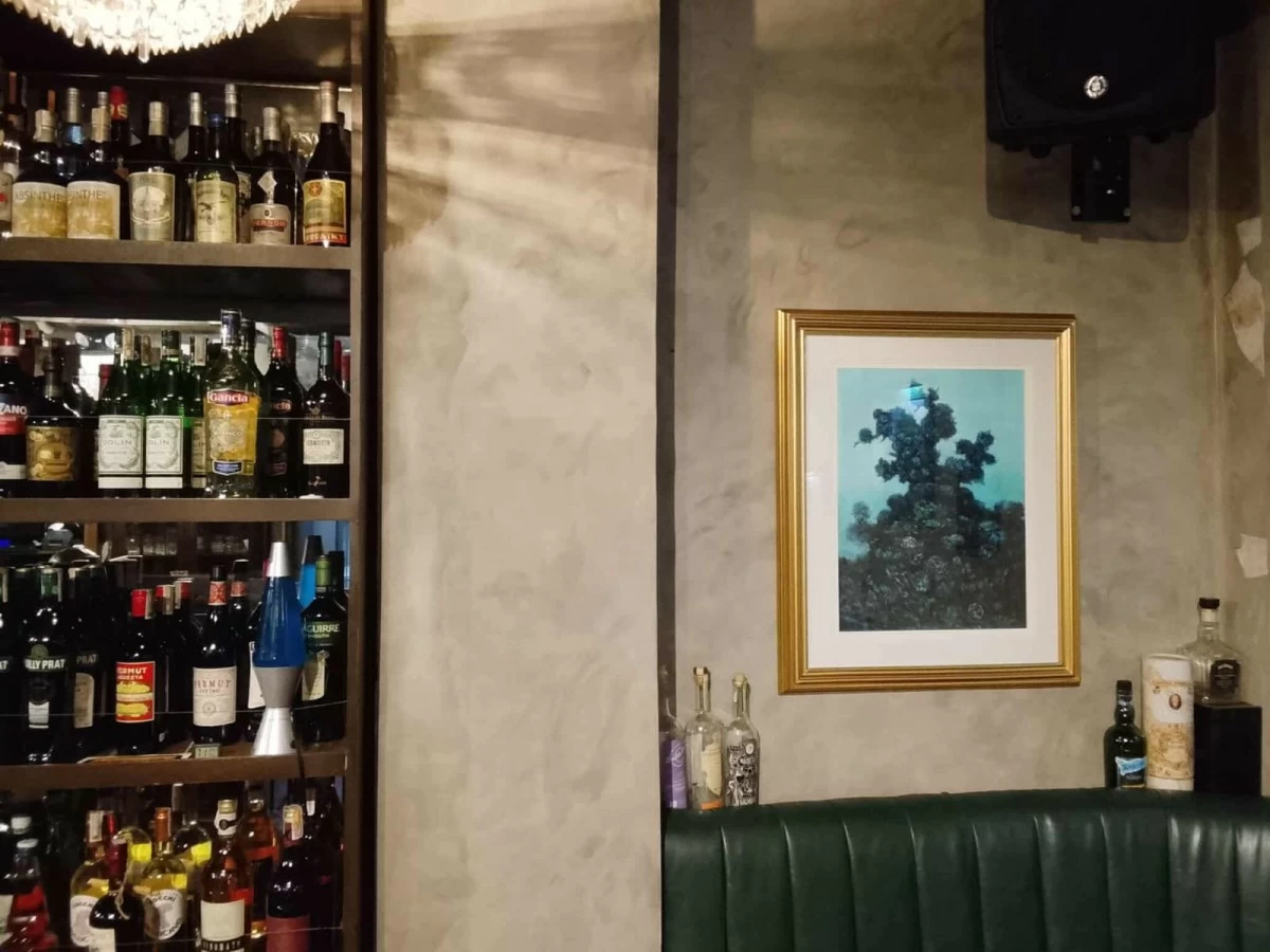 The paintings themselves lined the intimate corners of the bar, inviting slow gazes between sips. To stand with a glass in hand and meet Sansó’s vision head-on gave the night a rare balance: drink and art in dialogue, neither overpowering the other. As one guest said quietly, “It’s like drinking the painting.”