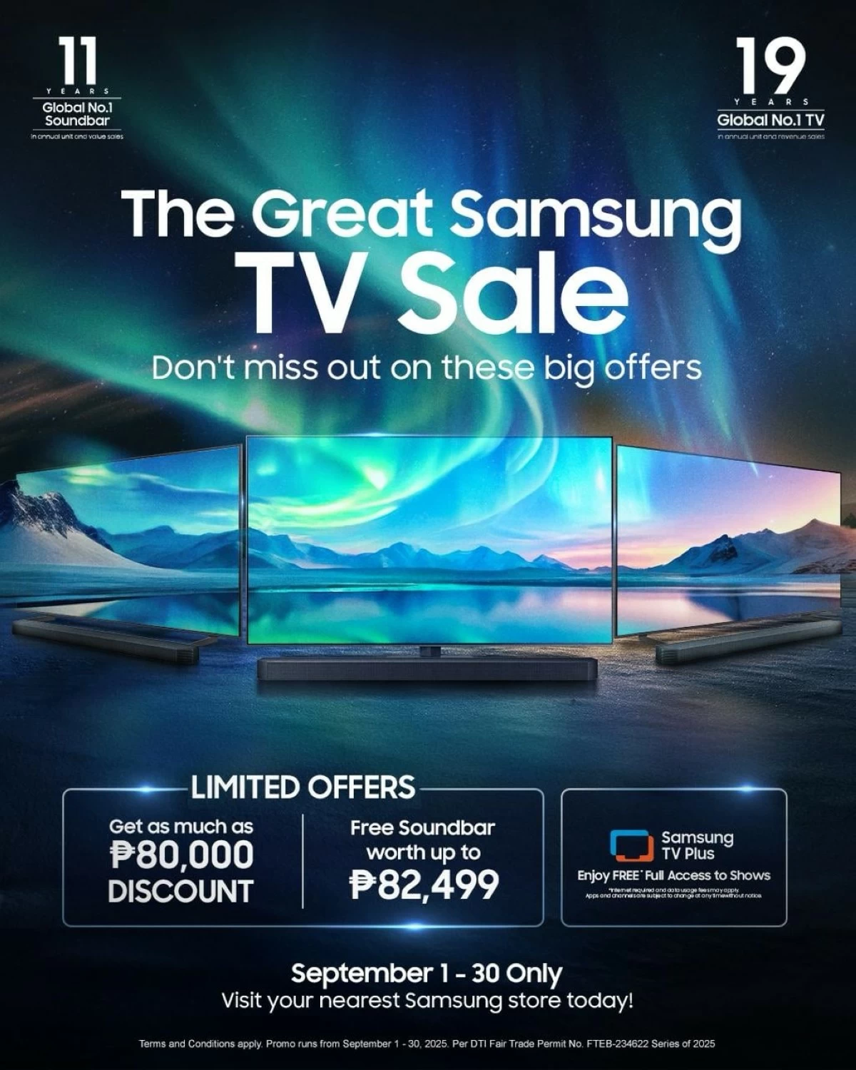 Make every moment brighter and smarter with Samsung Neo QLED, QLED Vision AI, and Crystal UHD TVs. Samsung offers the perfect opportunity to upgrade your smart lifestyle with the Great Samsung TV Sale, running until September 30, 2025. Get up to P40,000 off on Samsung Vision AI and Crystal UHD TVs, plus take home a free soundbar worth P82,499.