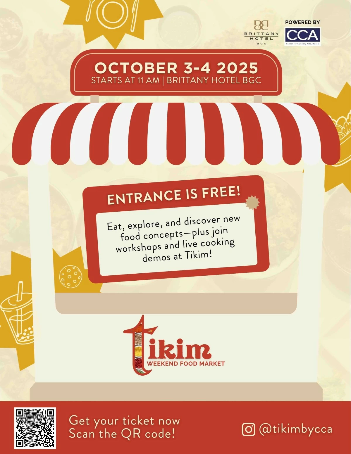 For two days only, the Center for Culinary Arts (CCA Manila) is gathering chefs, entrepreneurs, and food lovers for the first Tikim Weekend Food Market, happening October 3-4 at Brittany Hotel in Bonifacio Global City.