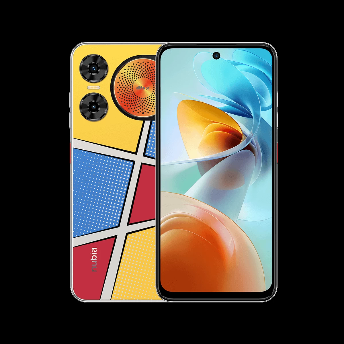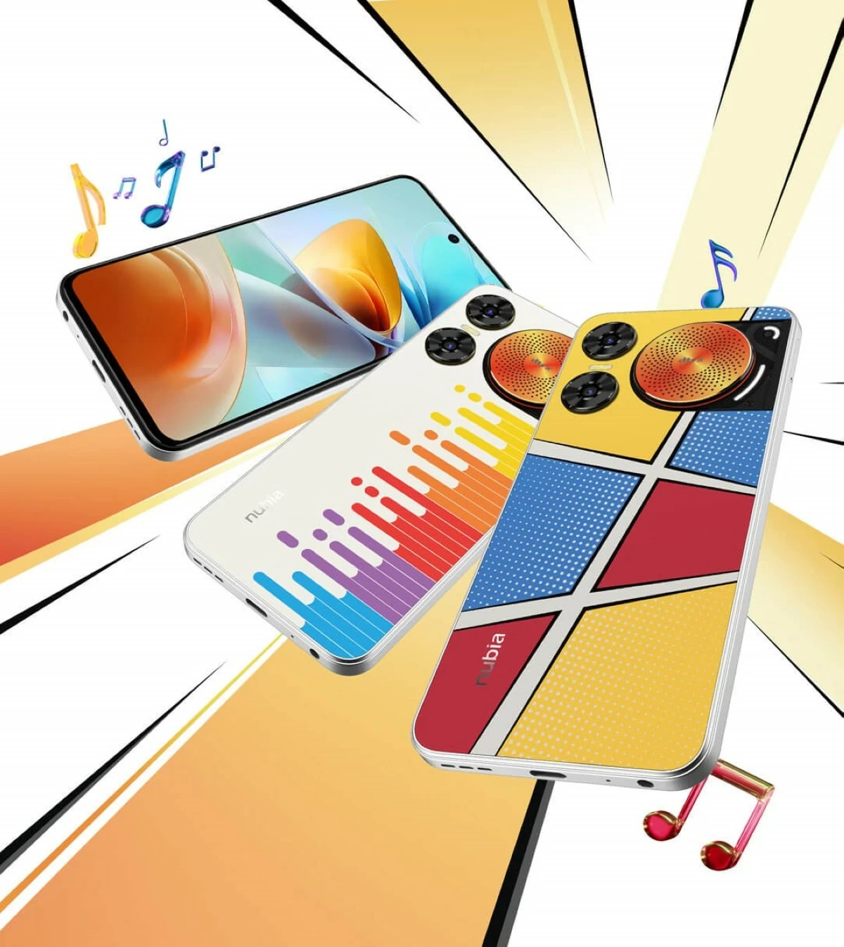 Like the nubia Neo 2 5G, the nubia Music Pro has a funky back cover. But this time, the new nubia phone reflects its inclination toward music. The eye-catching circular metallic orange speaker grille draws inspiration from the classic vinyl record player. The right side of the grille is occupied by LEDs (AI Melody Breathing Light) that light up whenever a song or video is played, following its rhythm. Meanwhile, the rest of the back cover in our model is colorful, reminiscent of any young pop artist that comes to mind.