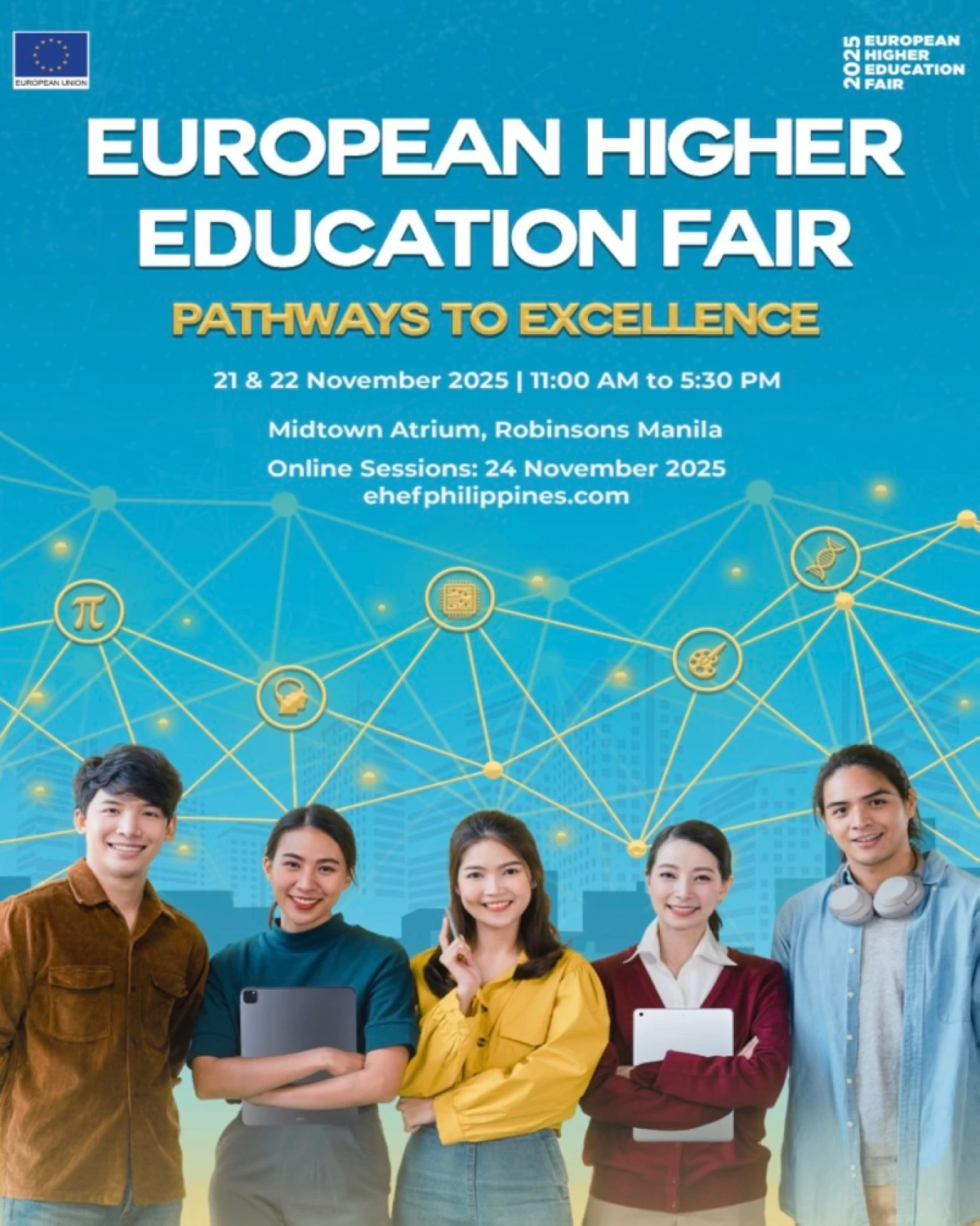 The EHEF 2025 will offer a hybrid experience, with onsite activities on Nov. 21 and 22 at the Midtown Atrium in Robinsons Manila, and online thematic webinars on Nov. 24. The fair serves as a gateway to world-class education in the EU, offering students, academicians, and researchers the opportunity to explore pathways that can shape their future.