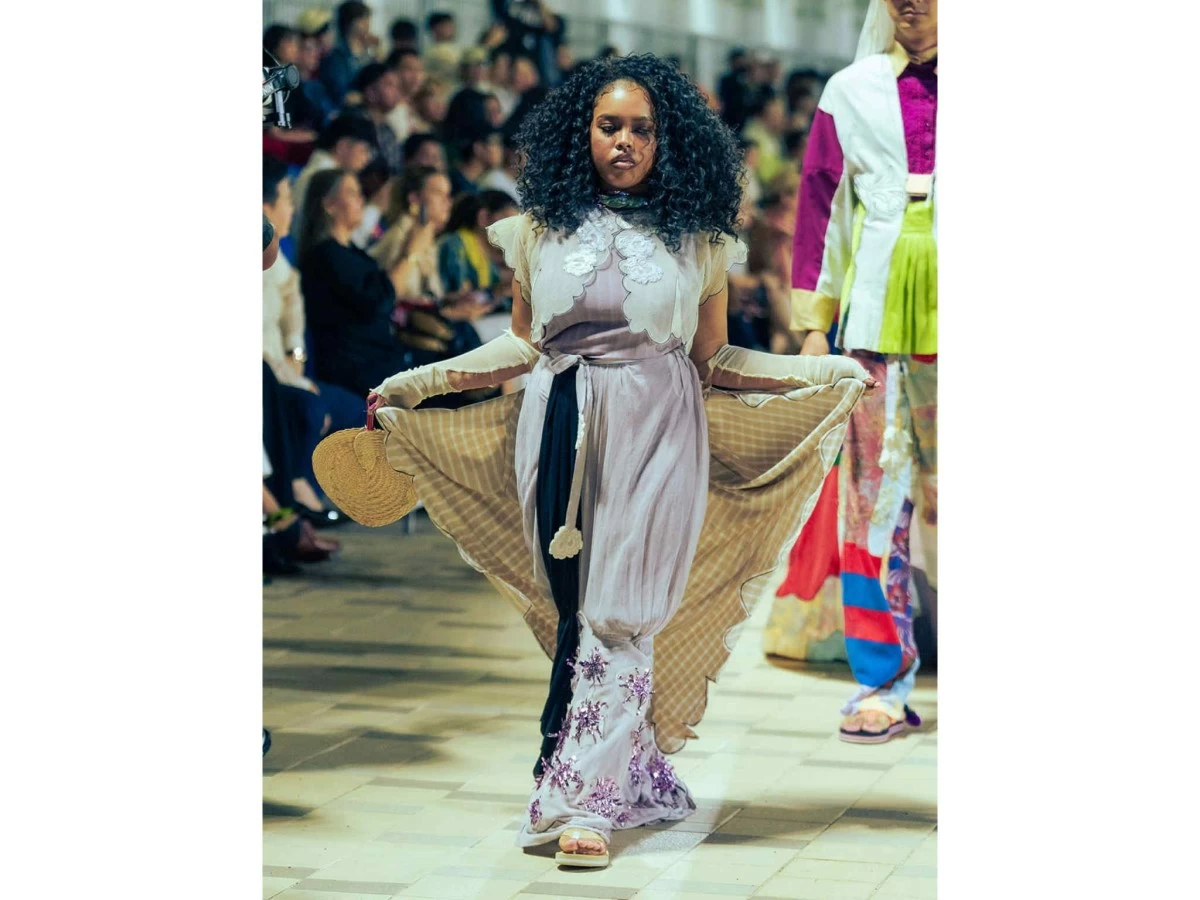 Staying true to her design codes, model, photographer, and designer Jo Ann Bitagcol presented a collection that’s boxy, easy, and bursting with colors and patterns. Her “Liga” collection features ensembles that combine stripes and checkered prints, complemented by her photographs of ternos and barongs.