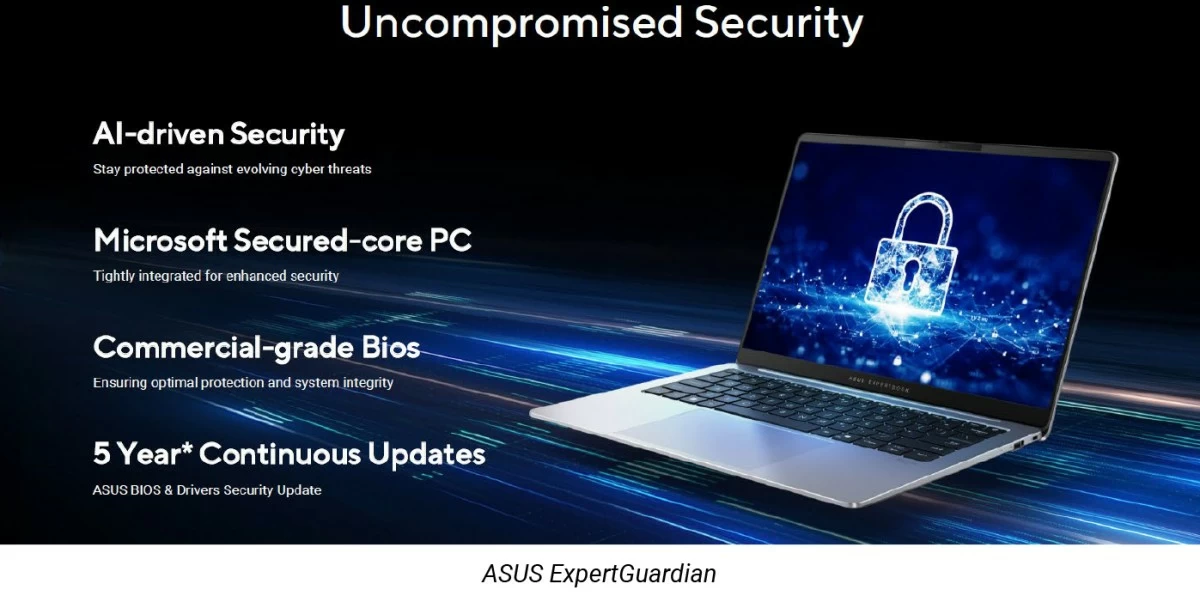 ASUS ExpertGuardian: Includes commercial-grade BIOS, Windows 11 Secured-core PC tech, complimentary 1-year McAfee+ Premium membership