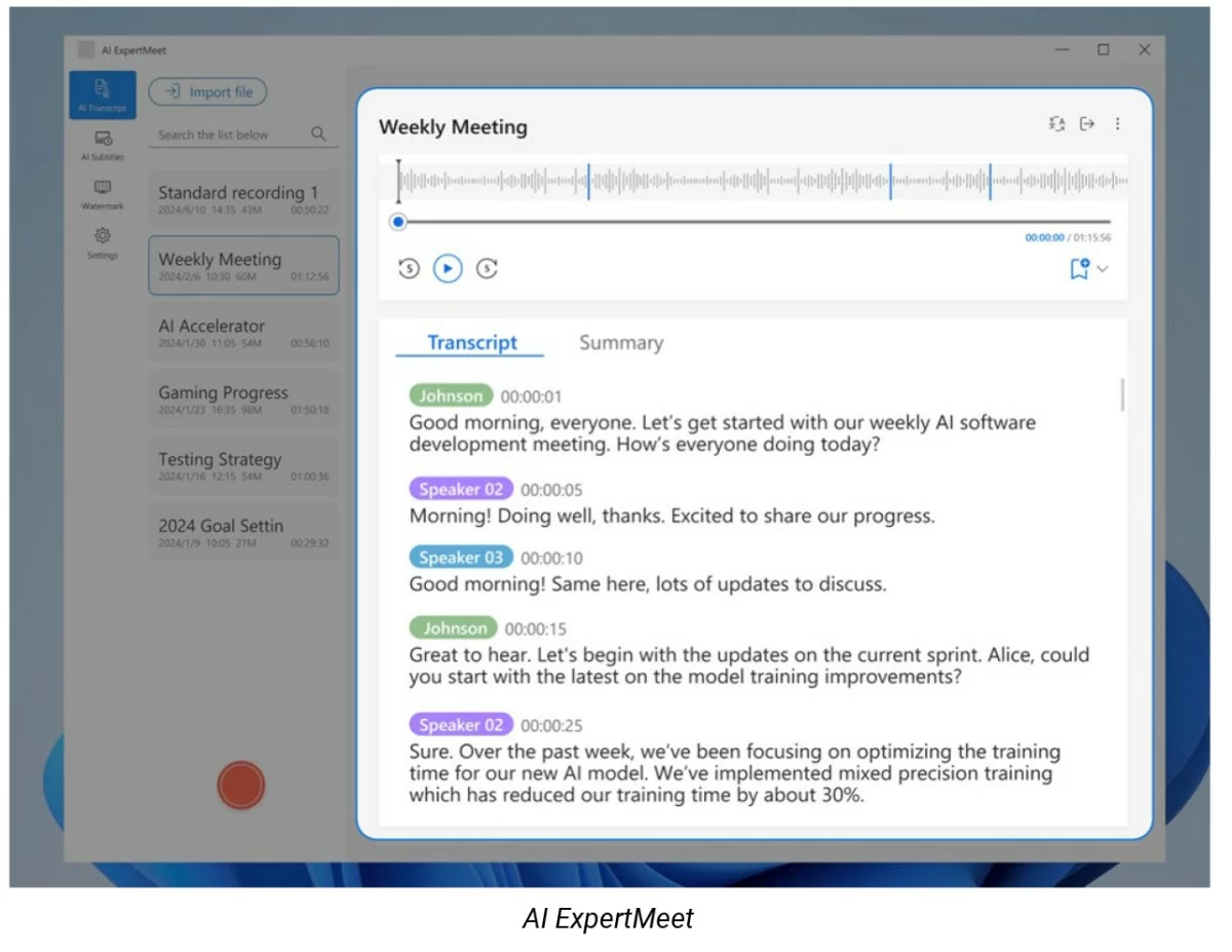 AI For Work: ASUS AI ExpertMeet automates meeting minutes, translates subtitles, offers watermarks in conference calls. Your data stays on you.