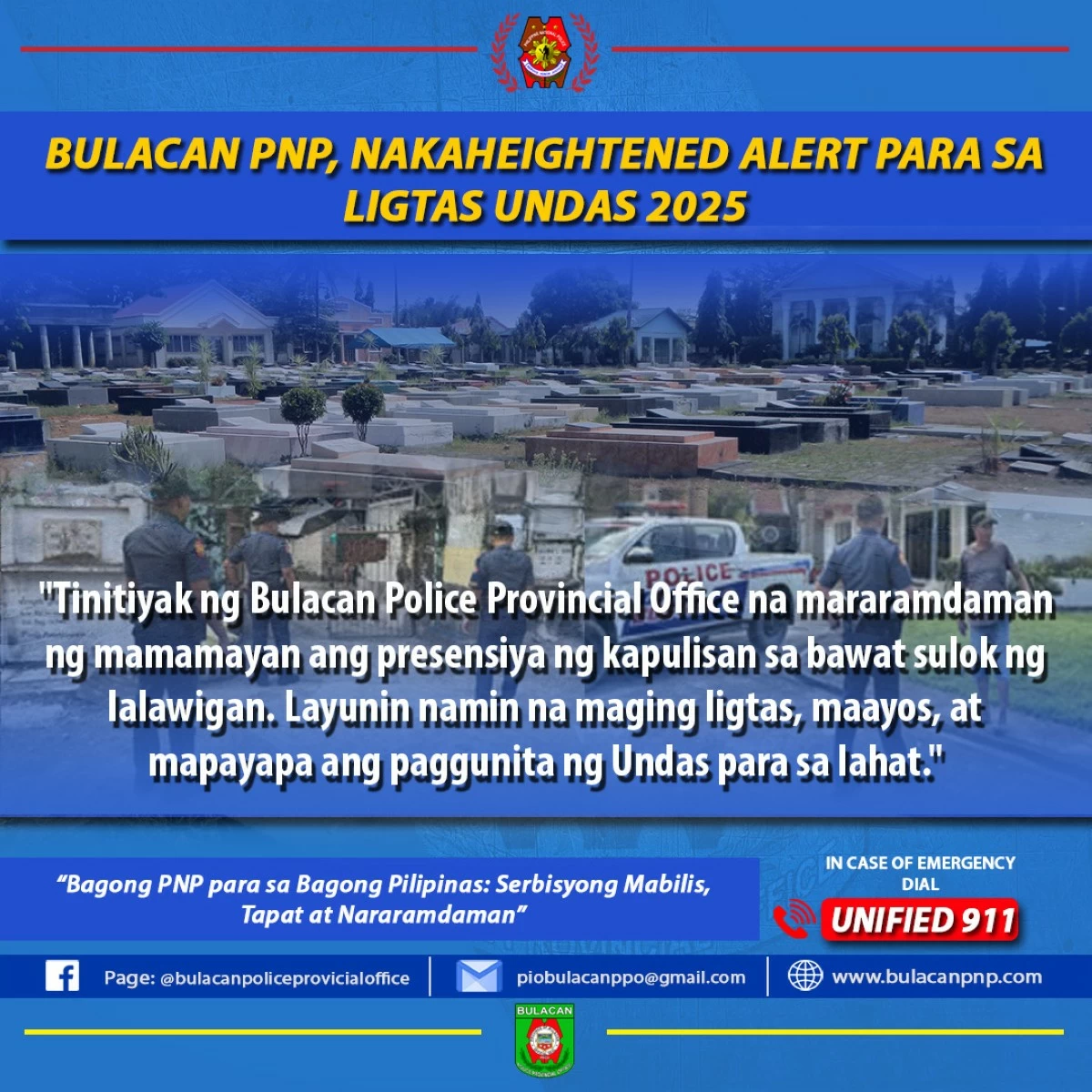 The Bulacan Police Provincial Office (BPPO) has been placed on heightened alert as part of the national “Ligtas Undas 2025” security and safety plan.