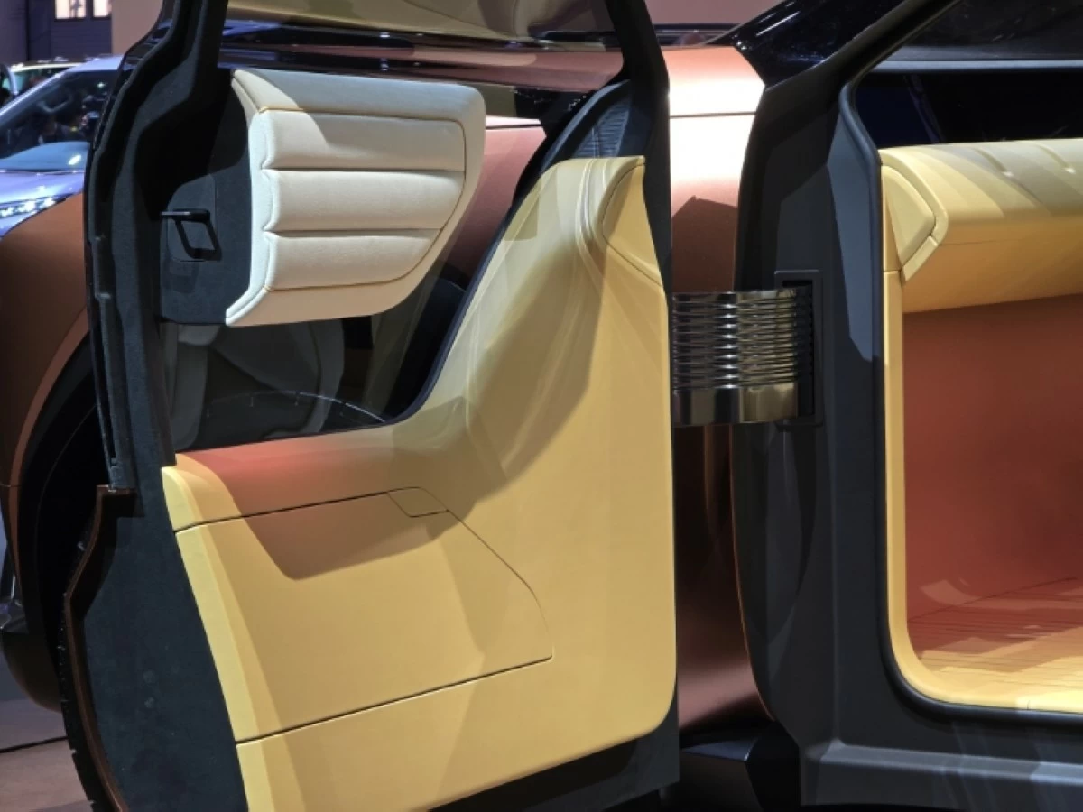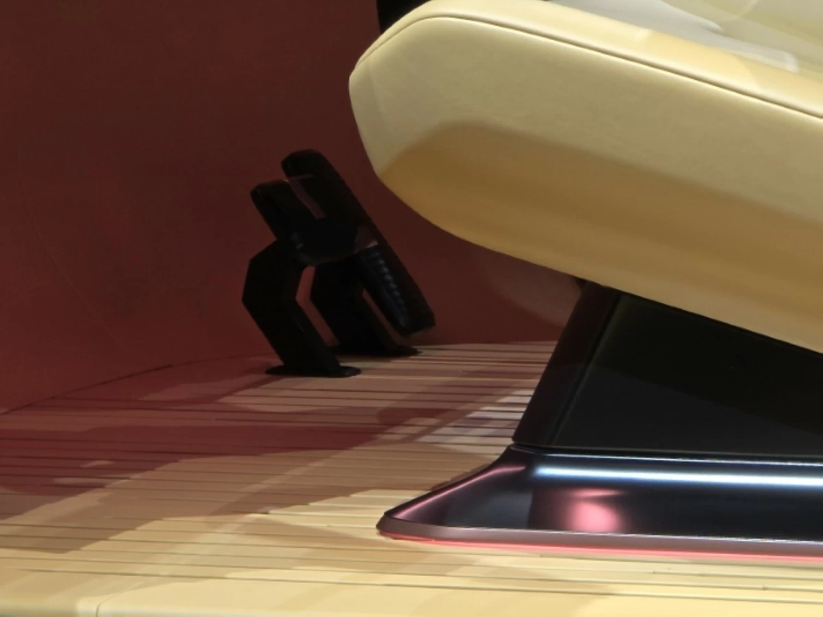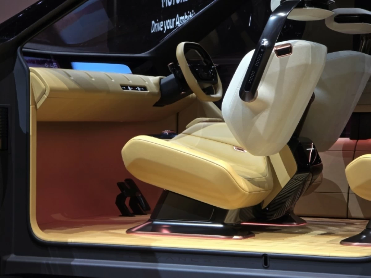 The cabin feels refined in a very concept car manner, with smooth surfaces and a floor that looks more at home on a high-end yacht than on a car. The wide, door-to-door display shows camera feeds that expand the driver’s field of vision far beyond what mirrors can reveal. The three-row layout comfortably seats six, with the entire vehicle wrapped in a massive tinted glass canopy that adds both space and light to the interior.