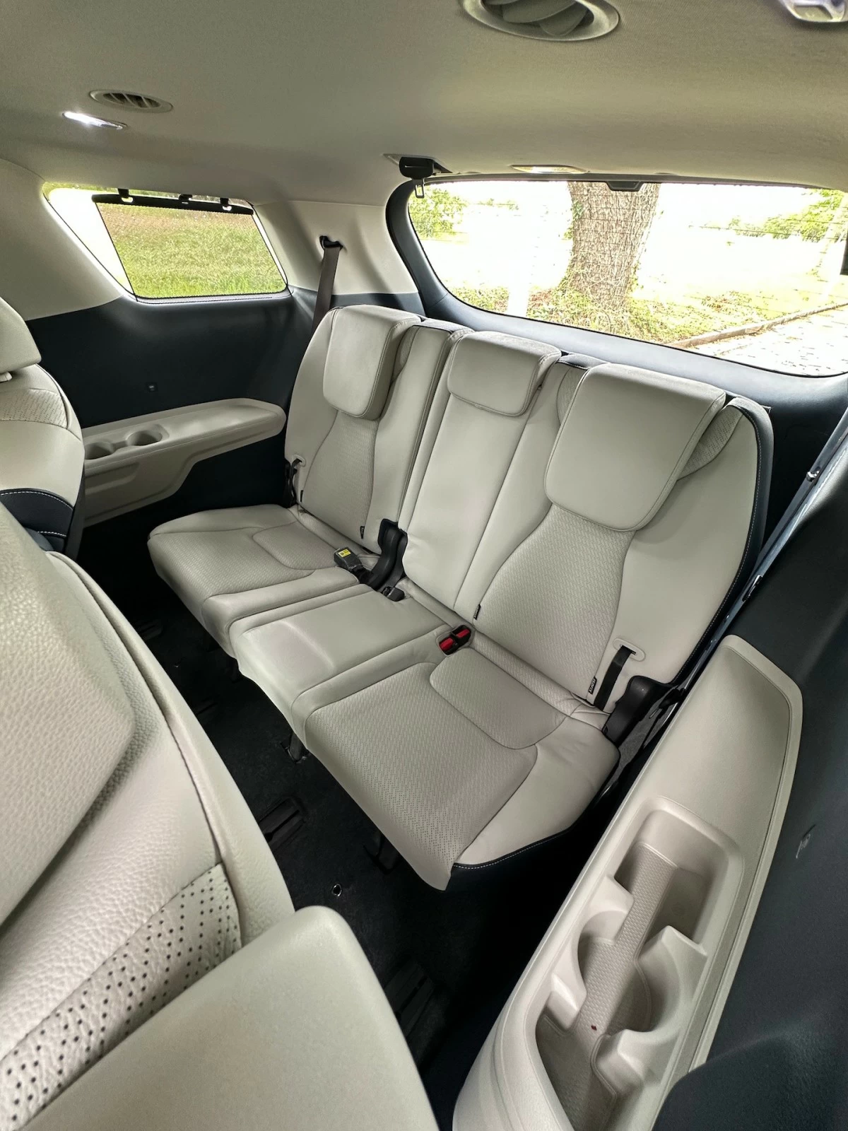 Inside is where buyers will get their money’s worth. It has all the trappings of a luxury model — leather upholstery, ambient lighting, and stylish inner panels. The equipment list is also top-notch — two side-by-side 12.3-inch screens (driver instrument panel and infotainment display), a tri-zone climate control system, multiple USB ports, and 12-volt outlets across three rows, power-adjustable ventilated (and heated) front seats, and best of all, two ventilated power relaxation captain’s seats in the second row with leg rests.