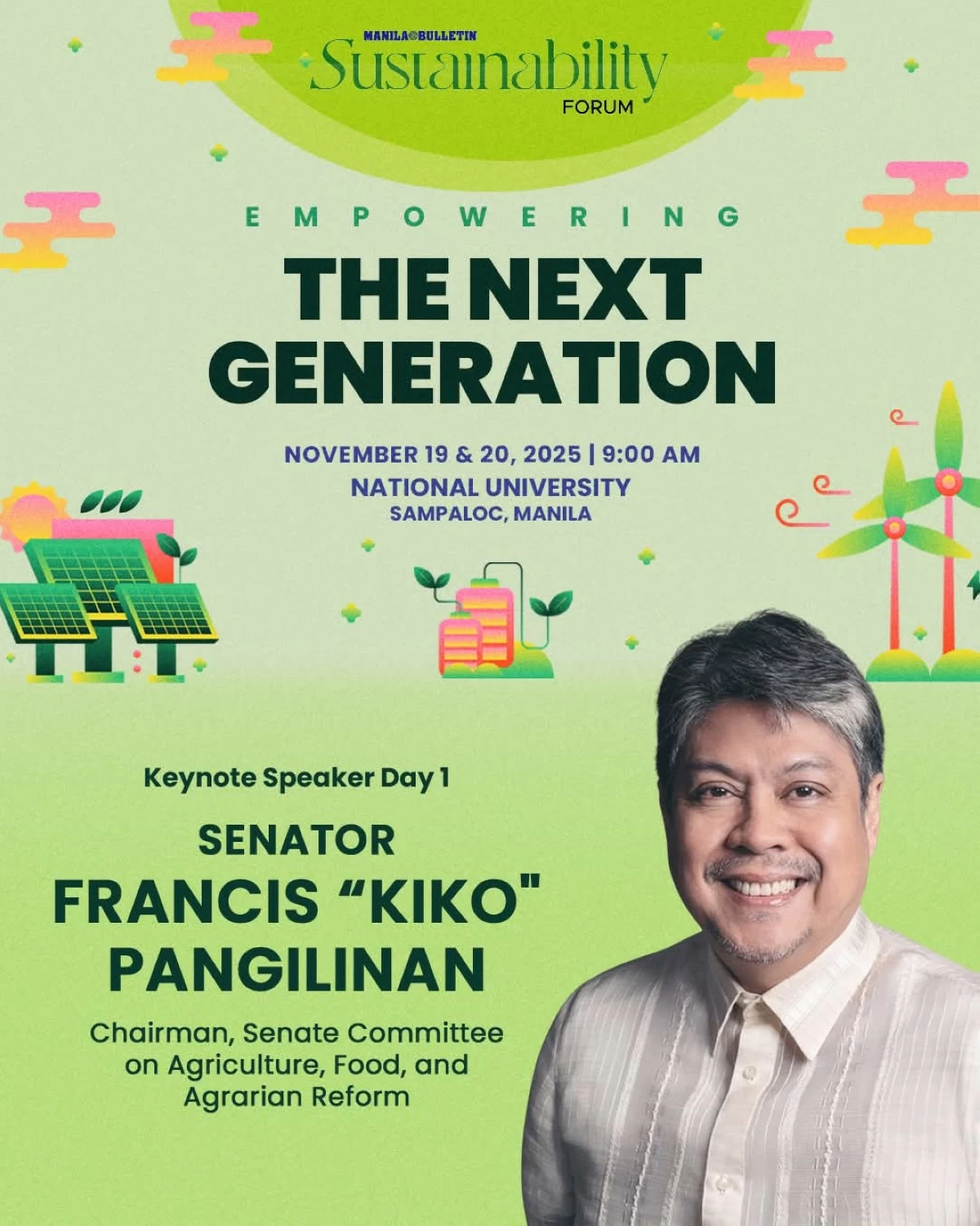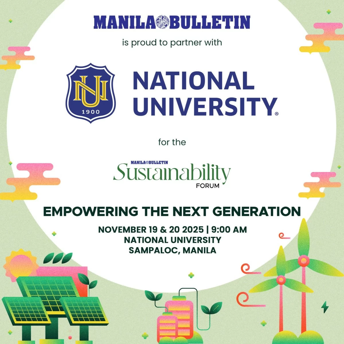 The Manila Bulletin, in partnership with top academic and major corporations, is set to host the Sustainability Forum 2025 with the theme "Empowering the Next Generation". Happening on Nov. 19 to 20, at the National University in Sampaloc, Manila, the two-day event aims to look more closely at how different Philippine industries are responding to global challenges by adopting practical and forward-looking sustainable practices.