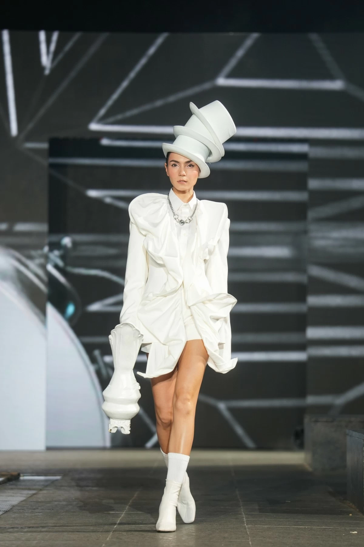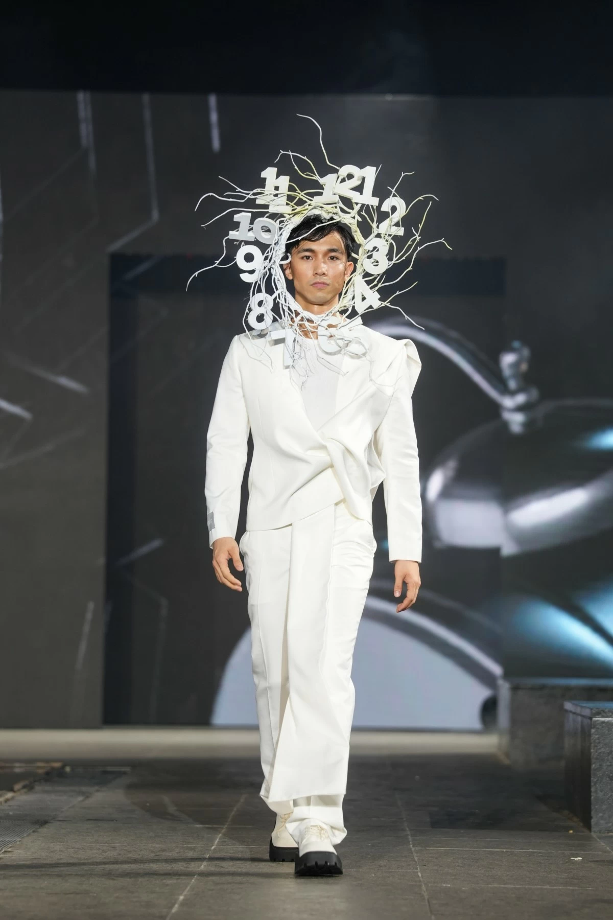 While the color white often suggests serenity and calmness, Bang sees it as the beginning of endless possibilities. “I used fine quality wool, tailoring them with soft silhouettes and cuts,” the designer tells Manila Bulletin Lifestyle. Set with thick, structured pieces, he played with layers to add dimension and movement through whimsical accents such as watches, drapes, and sheer layers. It’s a representation of how wide-eyed curiosity can guide this process, revealing itself through layers of experimentation.