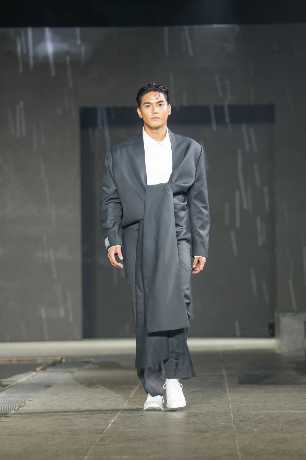 A hue that represents limbo, both literally and figuratively, takes on new dimensions in this second set filled with unfinished designs and raw, exposed details. “I’ve been a lover of deconstruction, which is why I love to work on unfinished tailoring,” Bang shares. His decision to use varying shades of gray represents how each of us has our own “gray” path to take. It’s a brave and uncertain journey that eventually leads us to where we are meant to be. The pieces in this segment affirm this sentiment through undone suits with intentional imperfections.