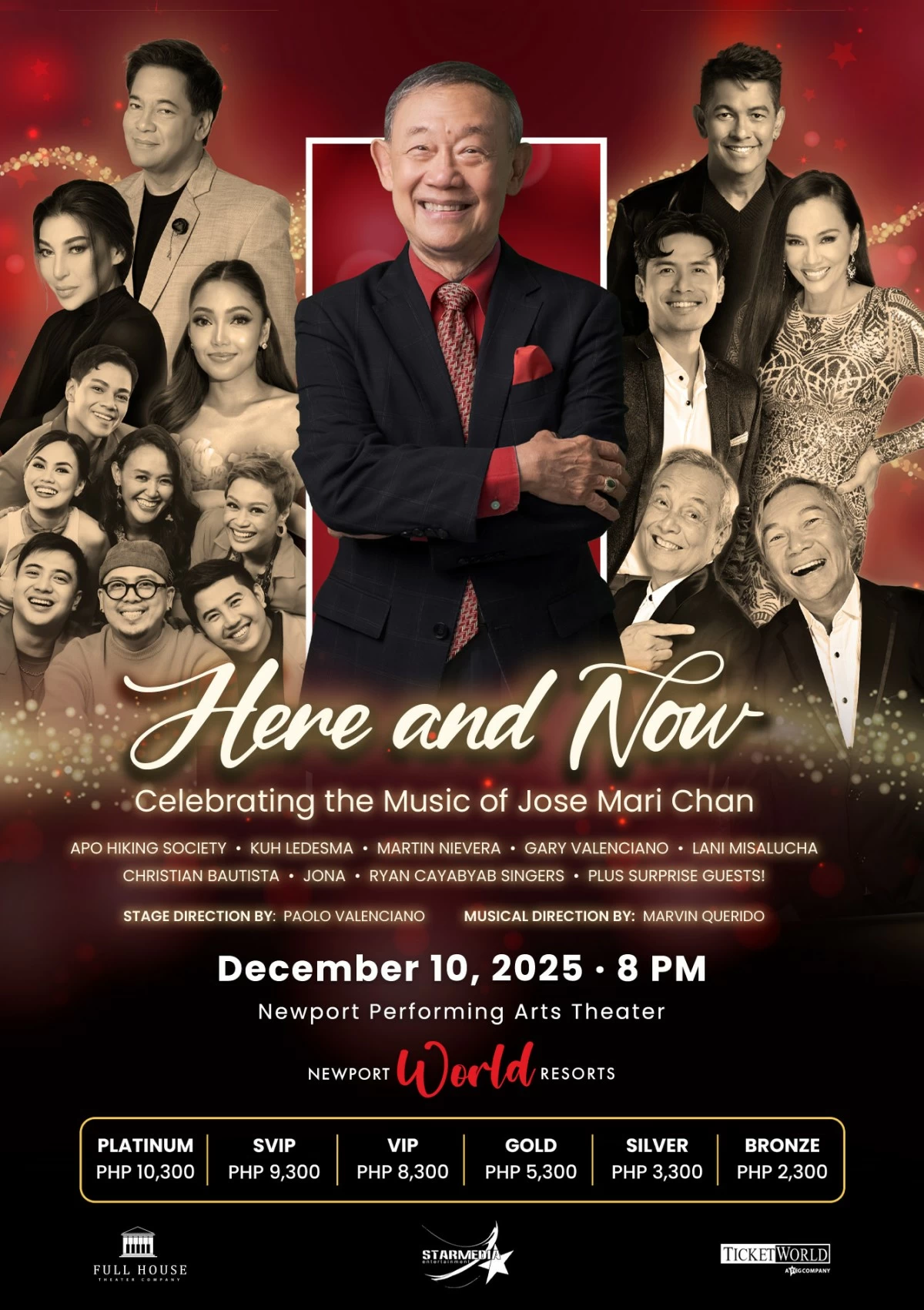 Music fans are also treated on Dec. 10 and 11 with Here and Now: Celebrating the Music of Jose Mari Chan. The two-night, sold-out concert celebrates the music of the legendary icon, featuring special performances from some of his fellow OPM artists.